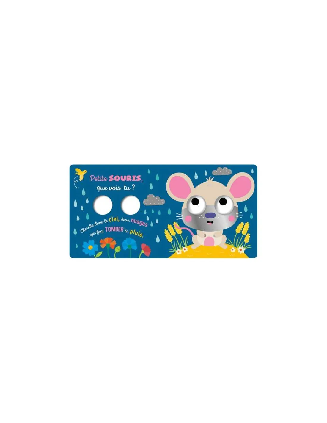 Cinq animaux très mignons, des gros yeux qui bougent sur toutes les pages, des surfaces à toucher, du papier doré et des choses à chercher : les touts petits vont être captivés par ce livre très coloré !