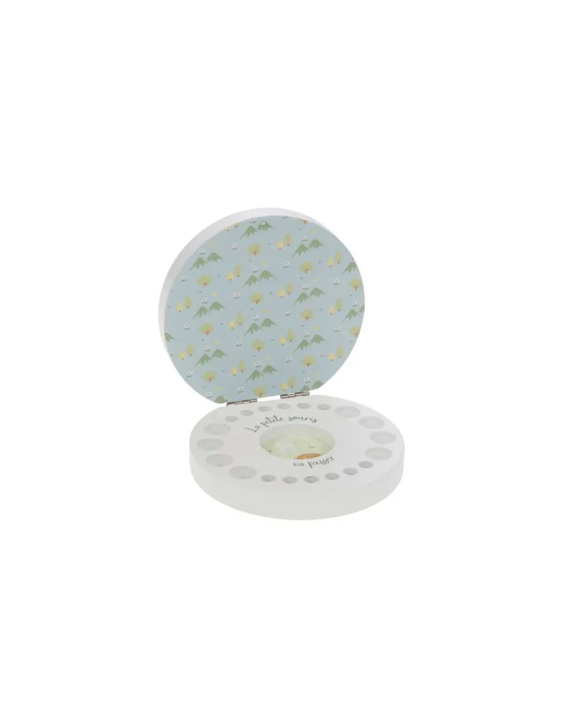 Une jolie boite qui s’ouvre, dans laquelle vous pourrez placer les 20 dents de lait de votre enfant et y glisser une pièce à l’intérieur lorsque la souris sera passée.