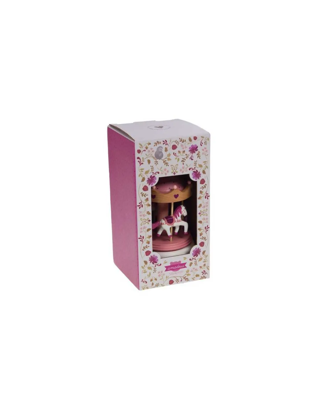 Découvrez la boite à musique carrousel Zoé de Amadeus Les Petits, un cadeau de naissance décoratif avec une douce mélodie. Un manège musical au design rétro d’antan.