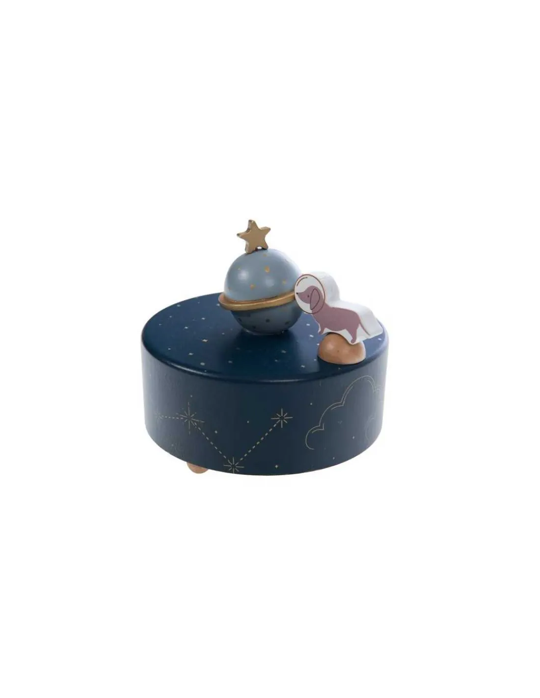 Ce cadeau trouvera sa place dans toutes les chambres d’enfants. Un cadeau musical où le mécanisme de la boite à musique se remonte en dessous de la boite. Votre enfant va adorer regarder tourner Marcel le chien astronaute au son de la douce mélodie.