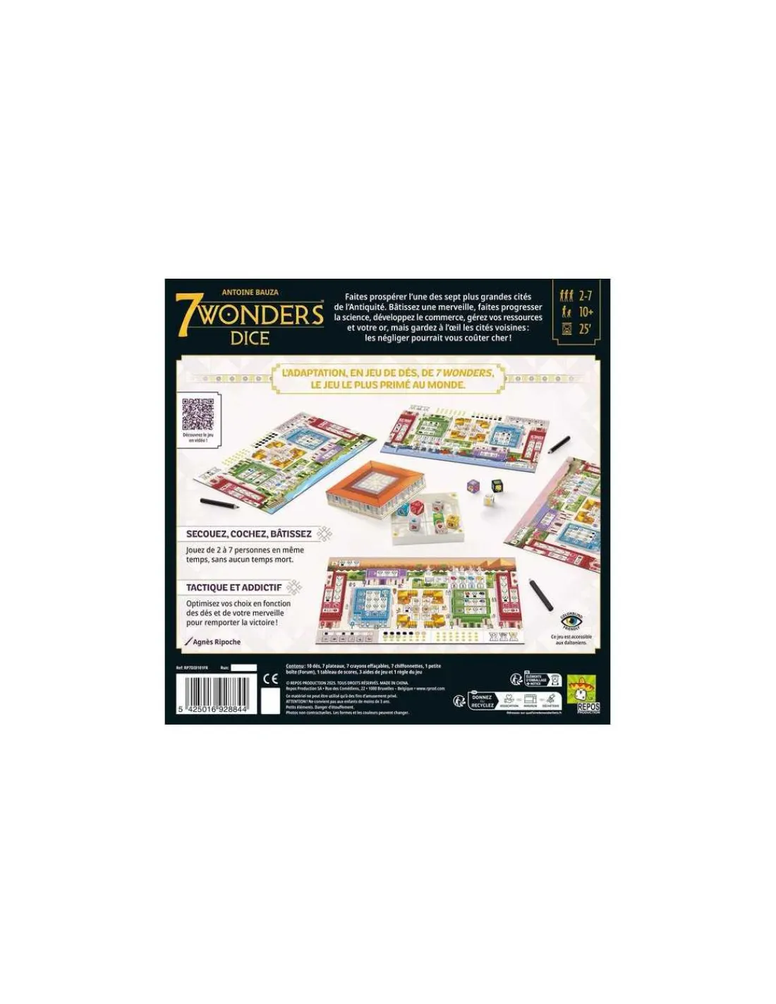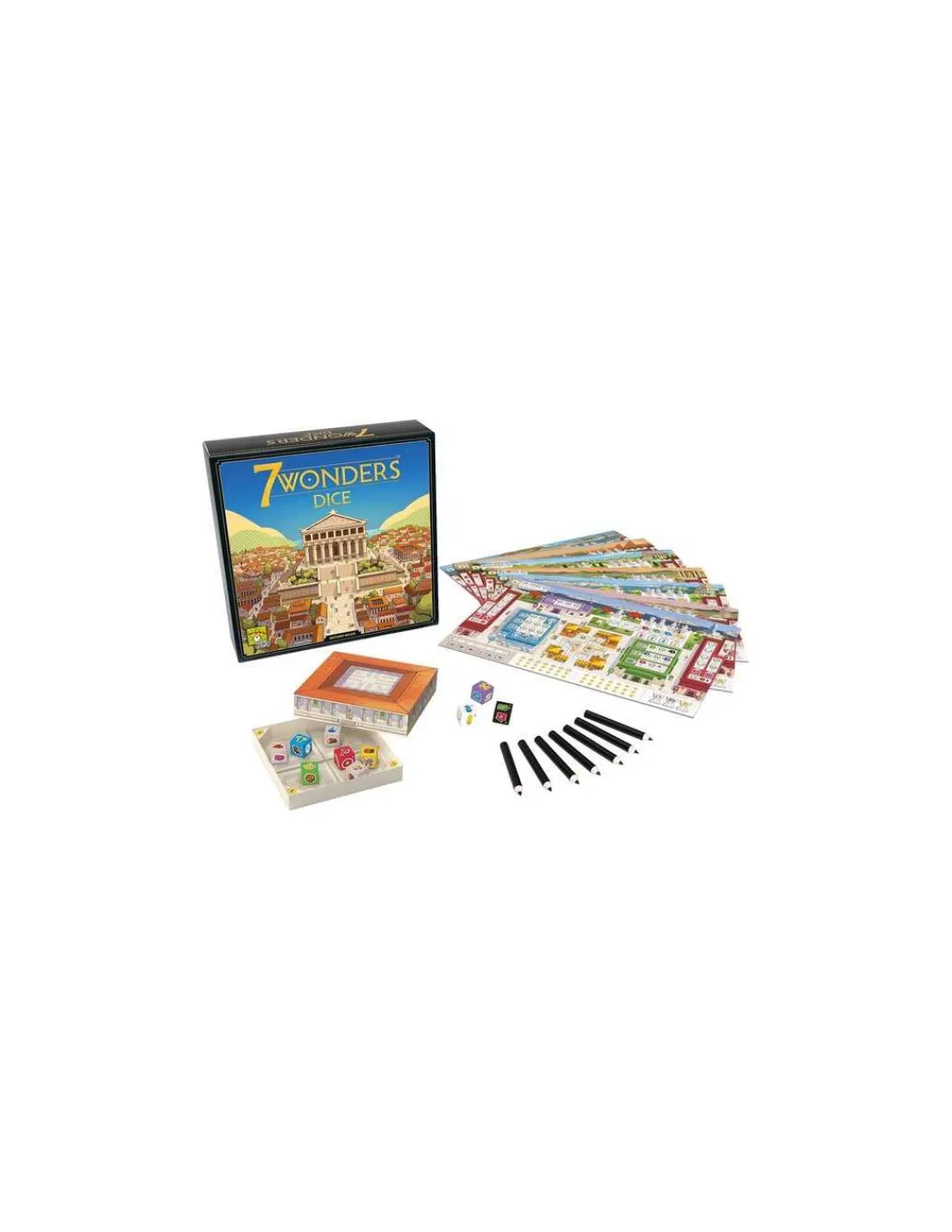 Découvrez le jeu 7 wonders Dice de Repos Production, l’adaptation en jeu de dés du jeu le plus primé du monde. Dans 7 Wonders Dice, retrouvez l’univers emblématique du jeu le plus primé au monde dans un roll & write.