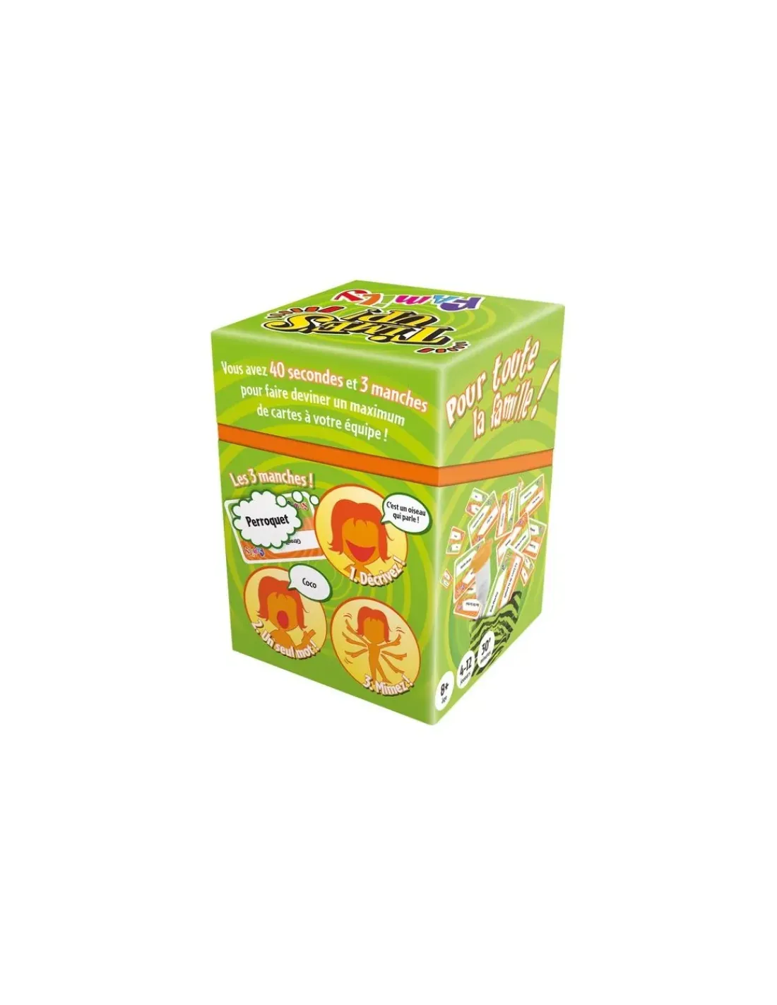Découvrez le jeu Time’s Up family, la version « famille » du célèbre Time’s up un jeu d’ambiance devenu culte autour des mimes et de la mémoire… Time’s Up family est un jeu à déguster en famille ou entre amis dans lequel vous devrez deviner et faire deviner des objets, des métiers ou des animaux.