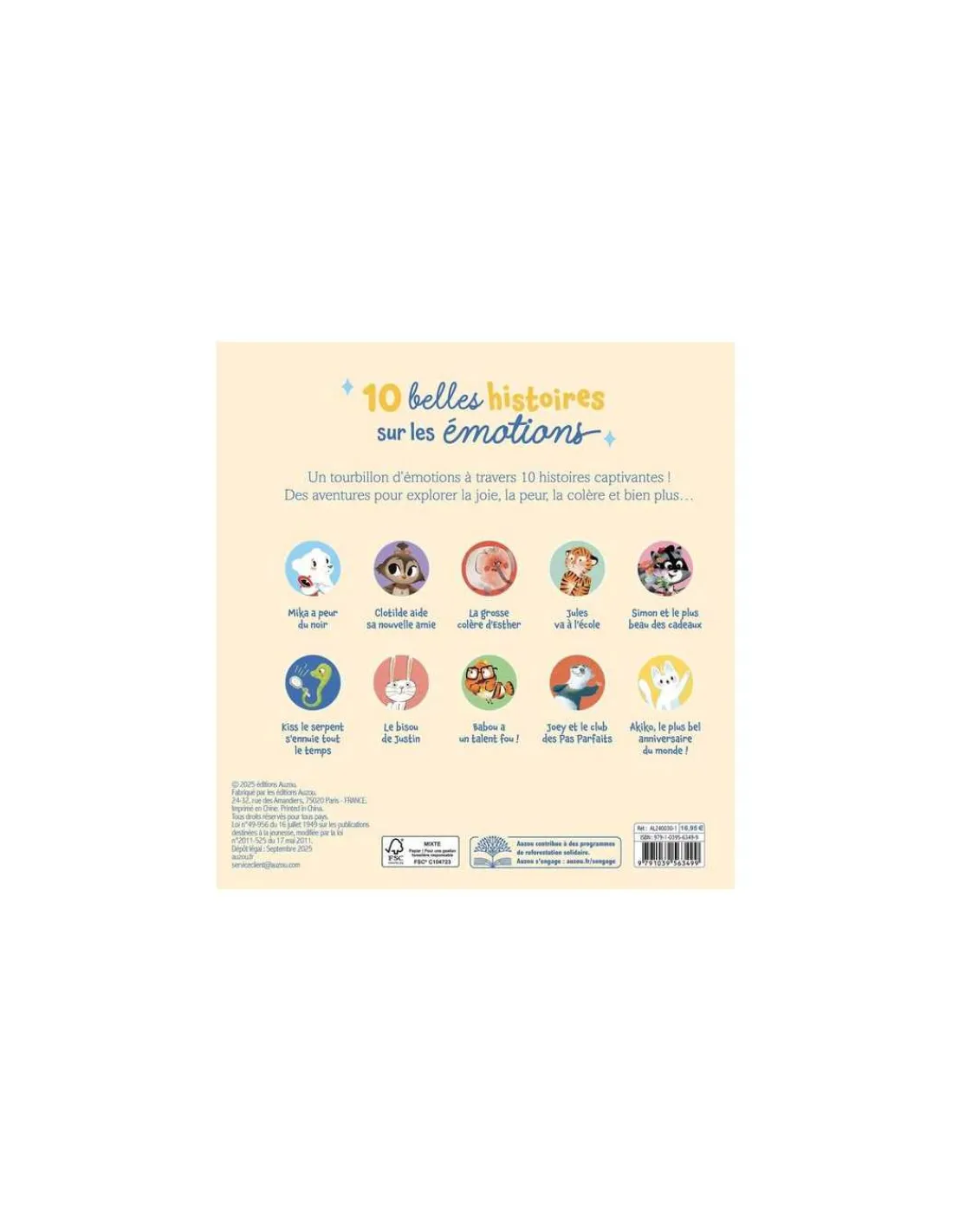 Découvrez le livre 10 belles histoires sur les émotions de Auzou, un tourbillon d’émotions à travers 10 histoires captivantes à offrir à partir de 3 ans. Des aventures pour explorer la joie, la colère, la peur et bien plus.