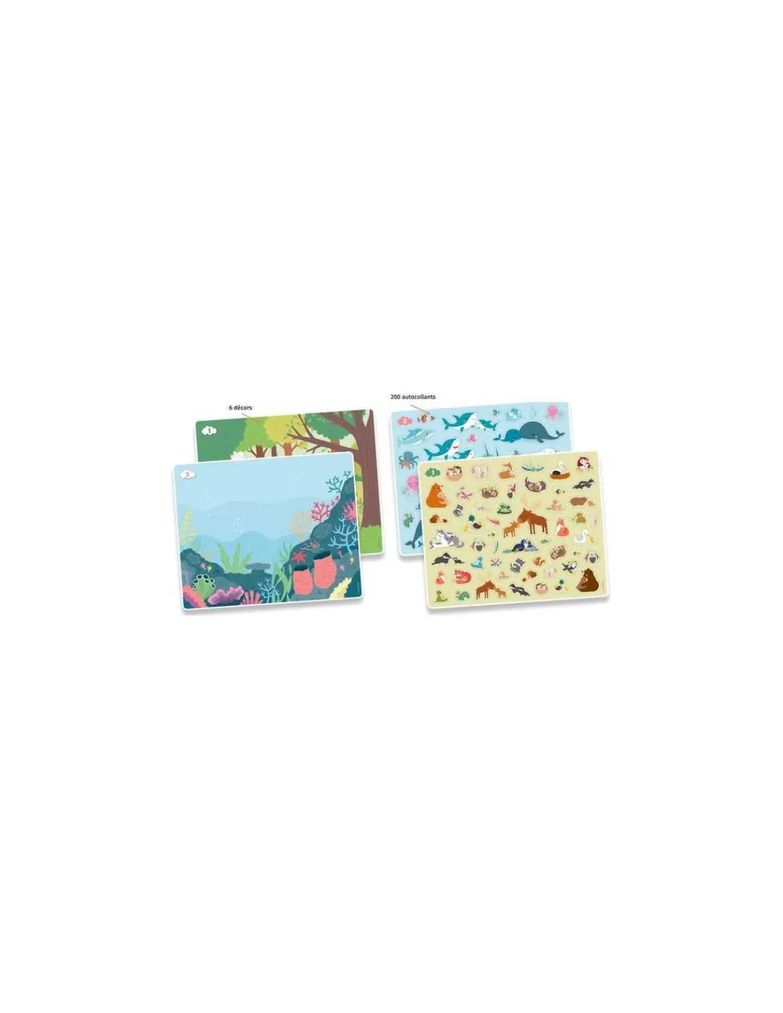 200 autocollants de bébés animaux adorables avec leur parent, à placer dans 6 décors différents!
