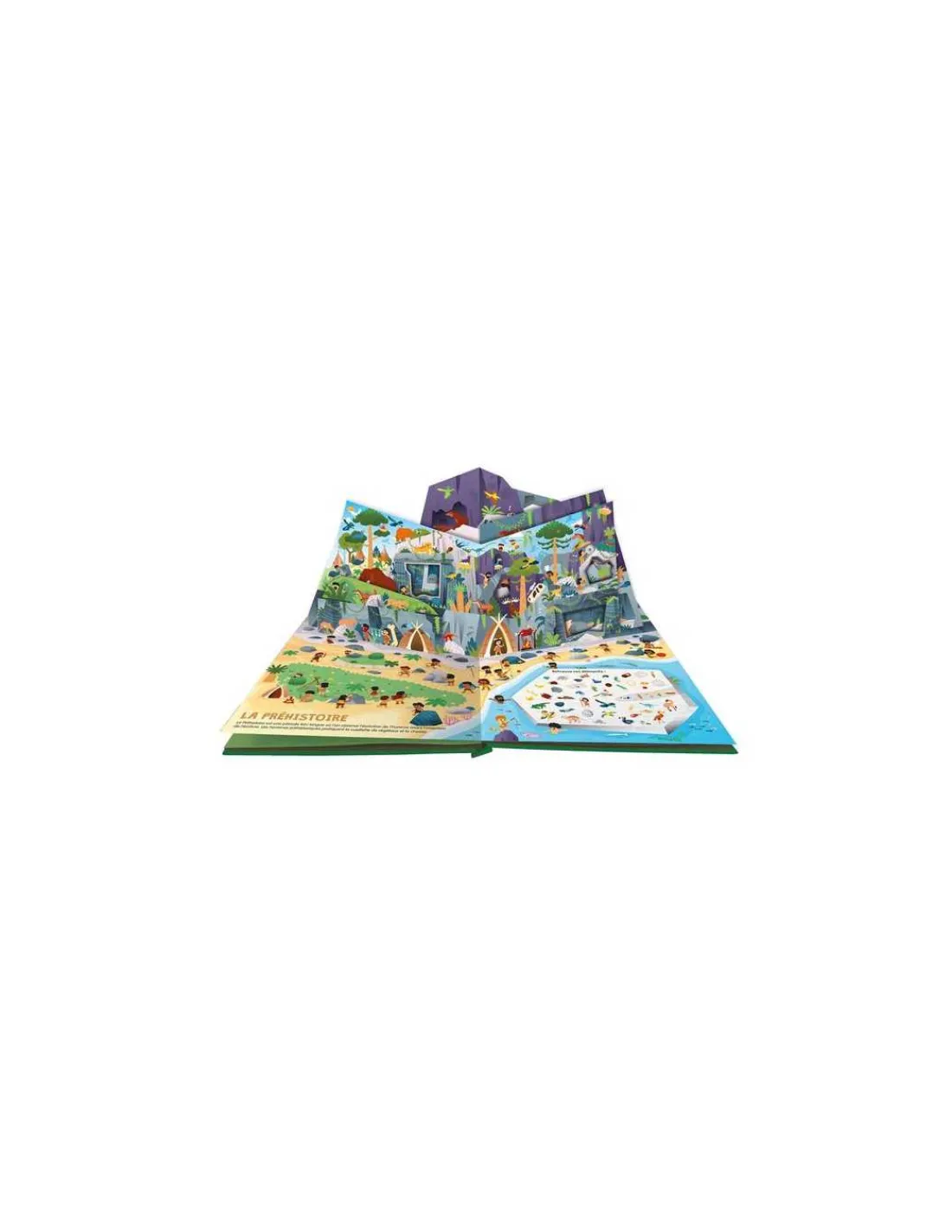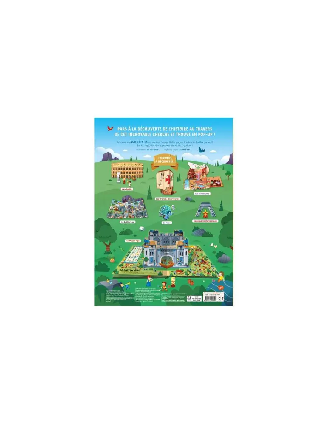 Dans ce livre ludique et éducatif, chacune des 10 pages en relief correspond à une période historique différente. Les enfants peuvent partir à la découverte de l’Histoire en retrouvant les 350 détails cachés au fil des pages, en fouillant partout : sur la page, derrière le pop-up et même à l’intérieur! Sept univers sont à explorer : l’Antiquité, les Grandes Découvertes, les Dinosaures, la Préhistoire, le Futur, l’époque Contemporaine et le Moyen-Âge.