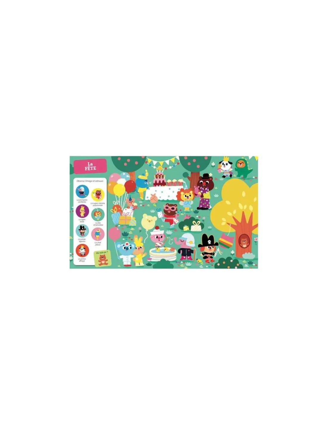 À travers 9 illustrations représentant des scènes du quotidien foisonnantes de détails, les petits partent à l’exploration de leurs émotions. Ils observent attentivement et retrouvent 7 éléments, ainsi que la mascotte bien cachés sur chaque planche.
