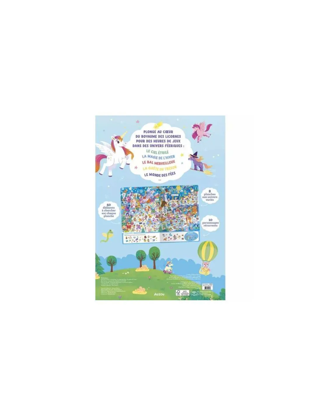 Découvrez le livre Cherche et trouve géant Au royaume des licornes de Auzou, un livre d’activités de 18 pages pour les enfants dès 4 an. Un Cherche et Trouve Géant pour explorer le fascinant monde des licornes.