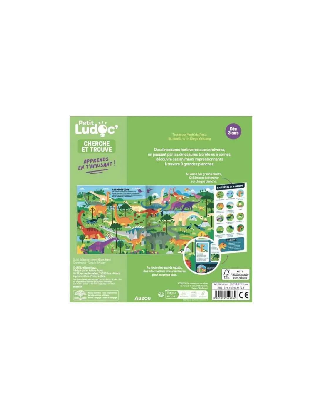Découvrez le livre documentaire cherche et trouve les dinosaures de Auzou, un livre d’activités de 24 pages permettant aux enfants dès 3 ans de partir à la découverte des dinosaures.