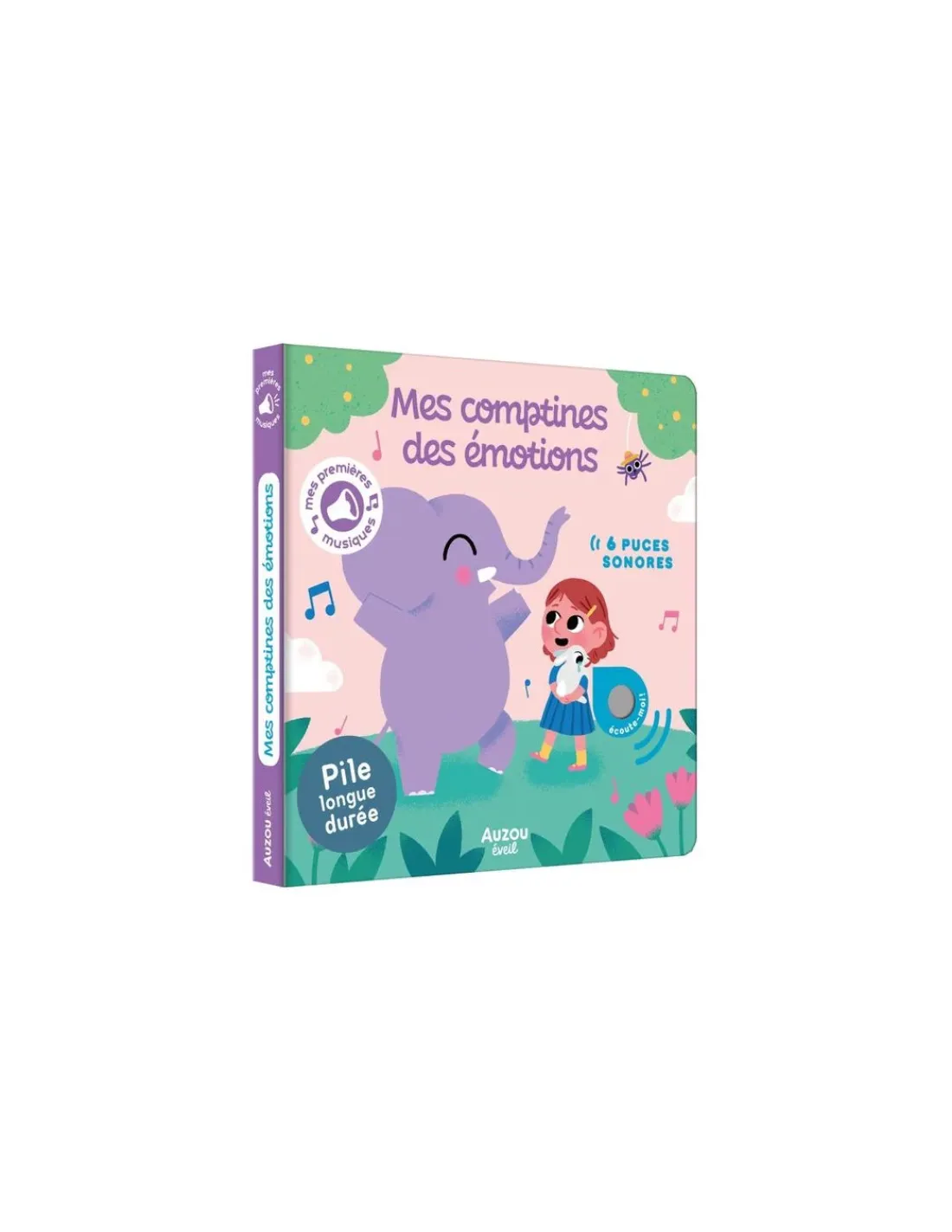 Découvrez le livre Mes comptines des émotions de Auzou, un livre sonore de 12 pages pour les enfants à partir de 1 an, qui regroupe 6 comptines douces et tendres pour parler des émotions avec son enfant.