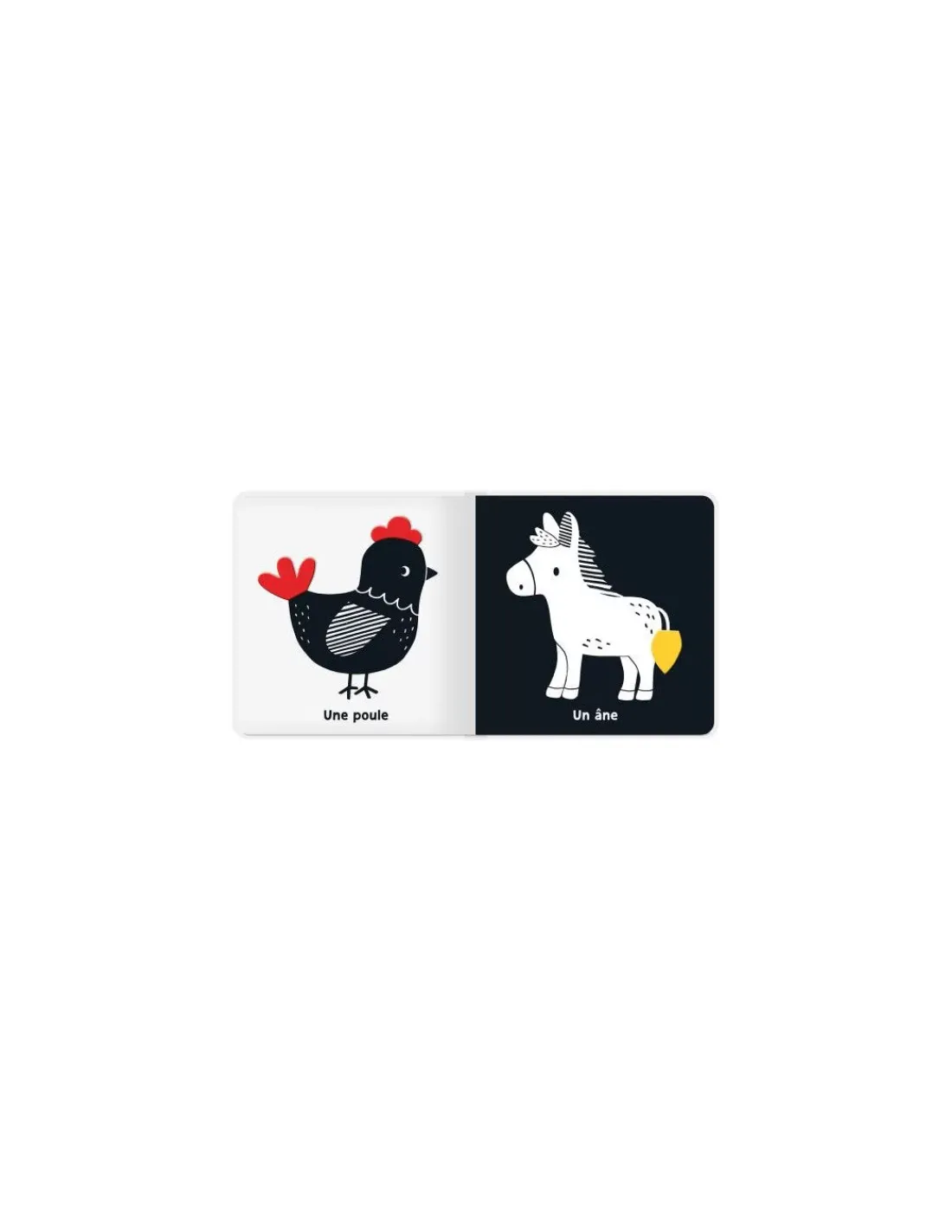 Bébé découvre l’univers de la ferme à travers un imagier en noir et blanc, indispensable à son développement. Des flaps en feutrine colorés aide bébé à développer sa motricité. Leurs couleurs contrastent avec les illustrations en noir et blanc, qui attirent ainsi l’attention du bébé dont la vision est en plein développement