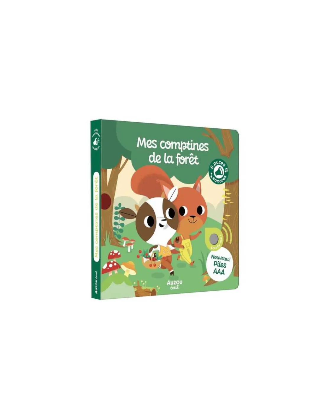 Découvrez le livre sonore Mes comptines de la forêt de Auzou, un livre sonore de 12 pages pour les enfants à partir de 1 an, qui regroupe 6 comptines courtes et faciles à mémoriser.