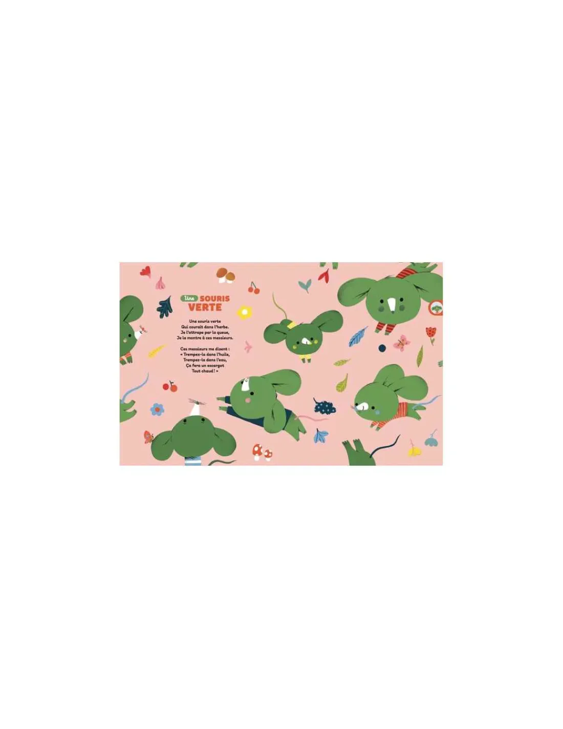 Parmi les 20 comptines à découvrir, retrouvez « Une souris verte », « Frères Jacques » et « Au clair de la lune », « Petit escargot », « J’ai un gros nez rouge », et « La famille tortue », faisant de cet ouvrage un incontournable pour les moments de partage en famille.