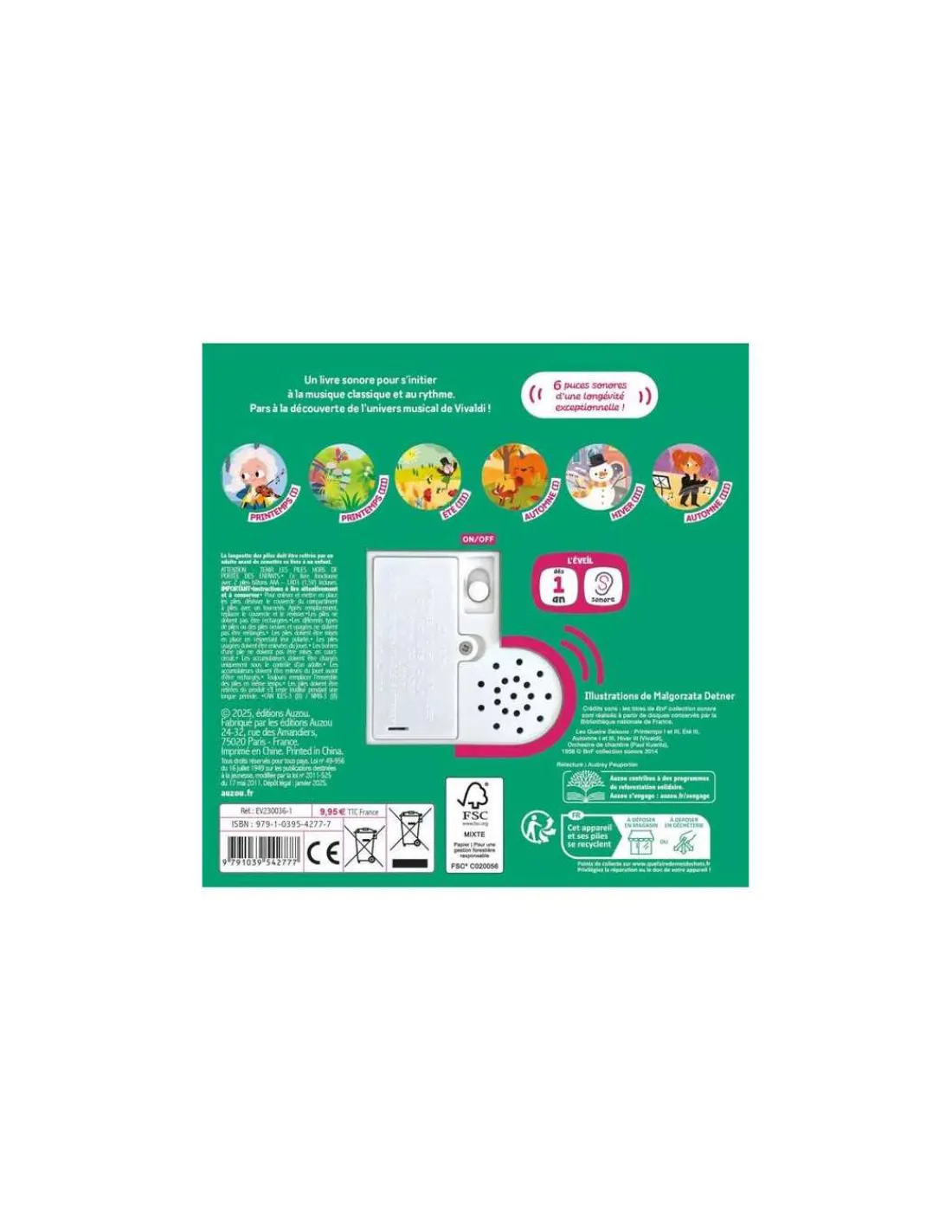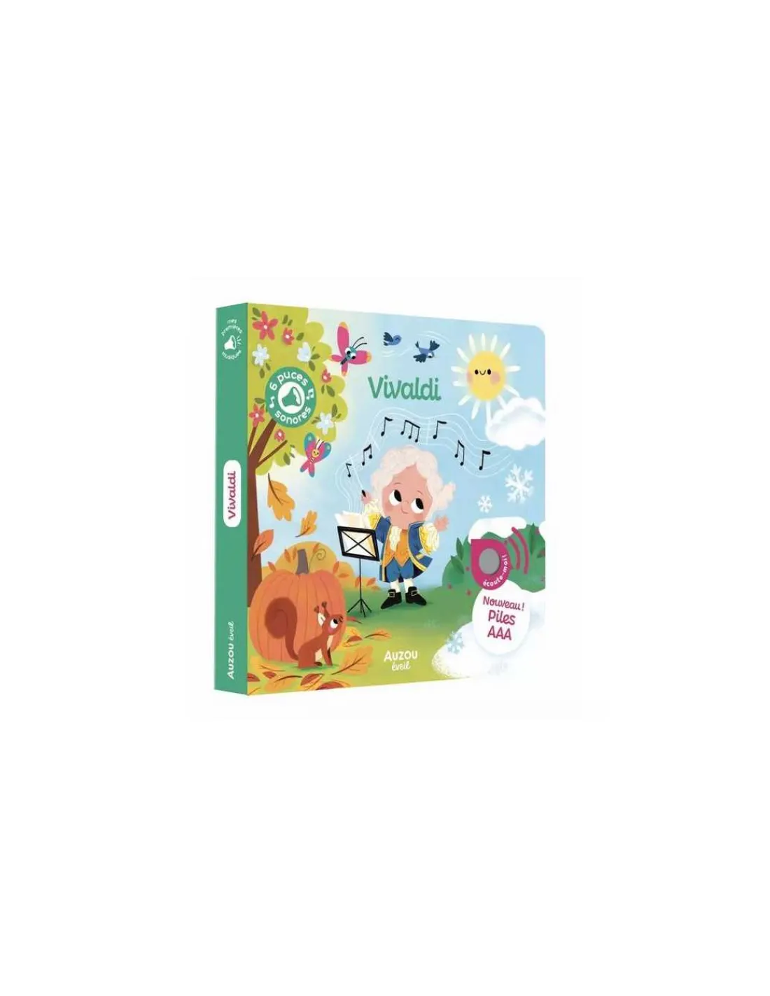 Découvrez le livre sonore Vivaldi de Auzou, un livre sonore de 12 pages pour les enfants à partir de 1 an, qui regroupe 6 extraits sonores des 4 saisons de Vivaldi.