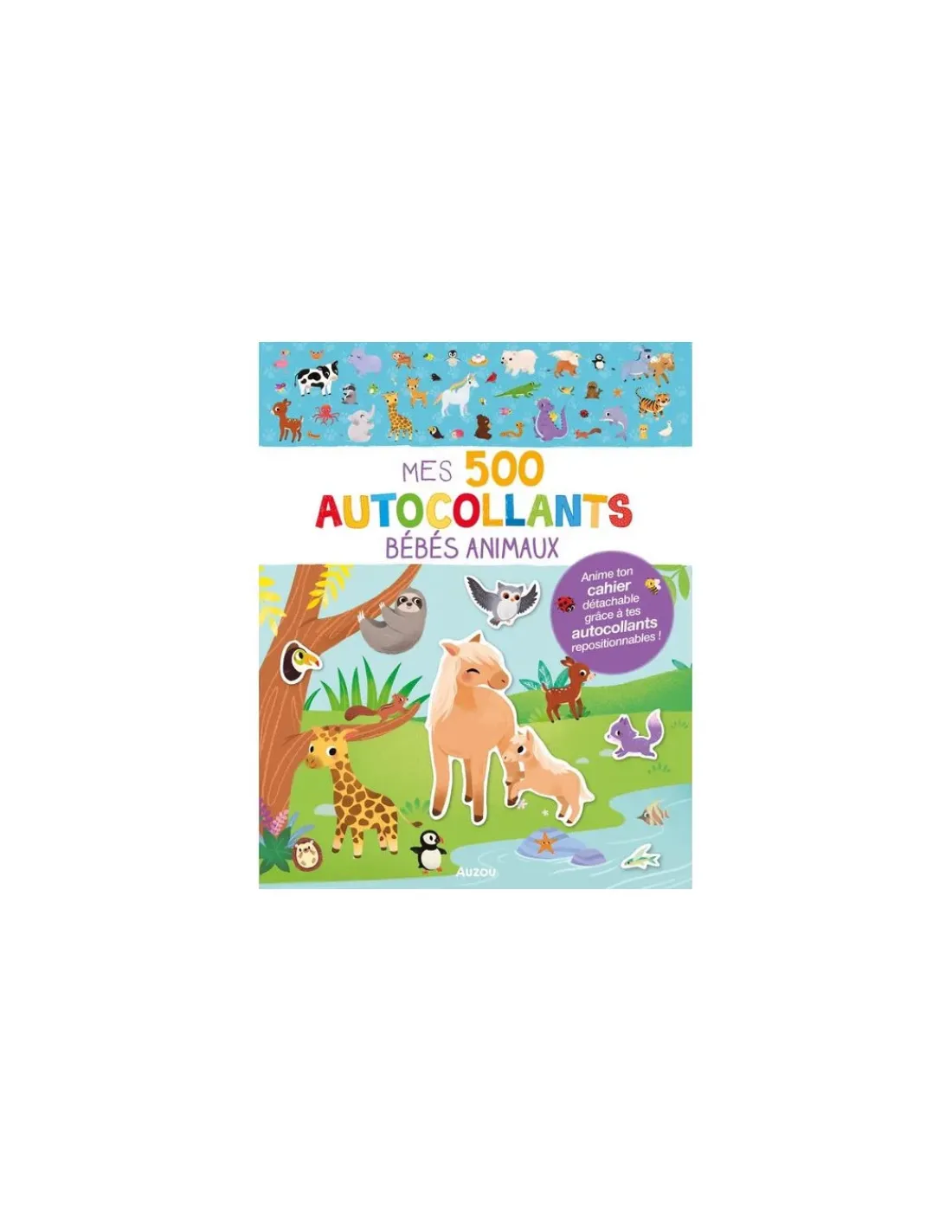 Découvrez le cahier Mes 500 autocollants bébé animaux de Auzou, un cahier de 32 pages que les enfants dès 3 ans prendront plaisir à animer grâce aux autocollants repositionnables.