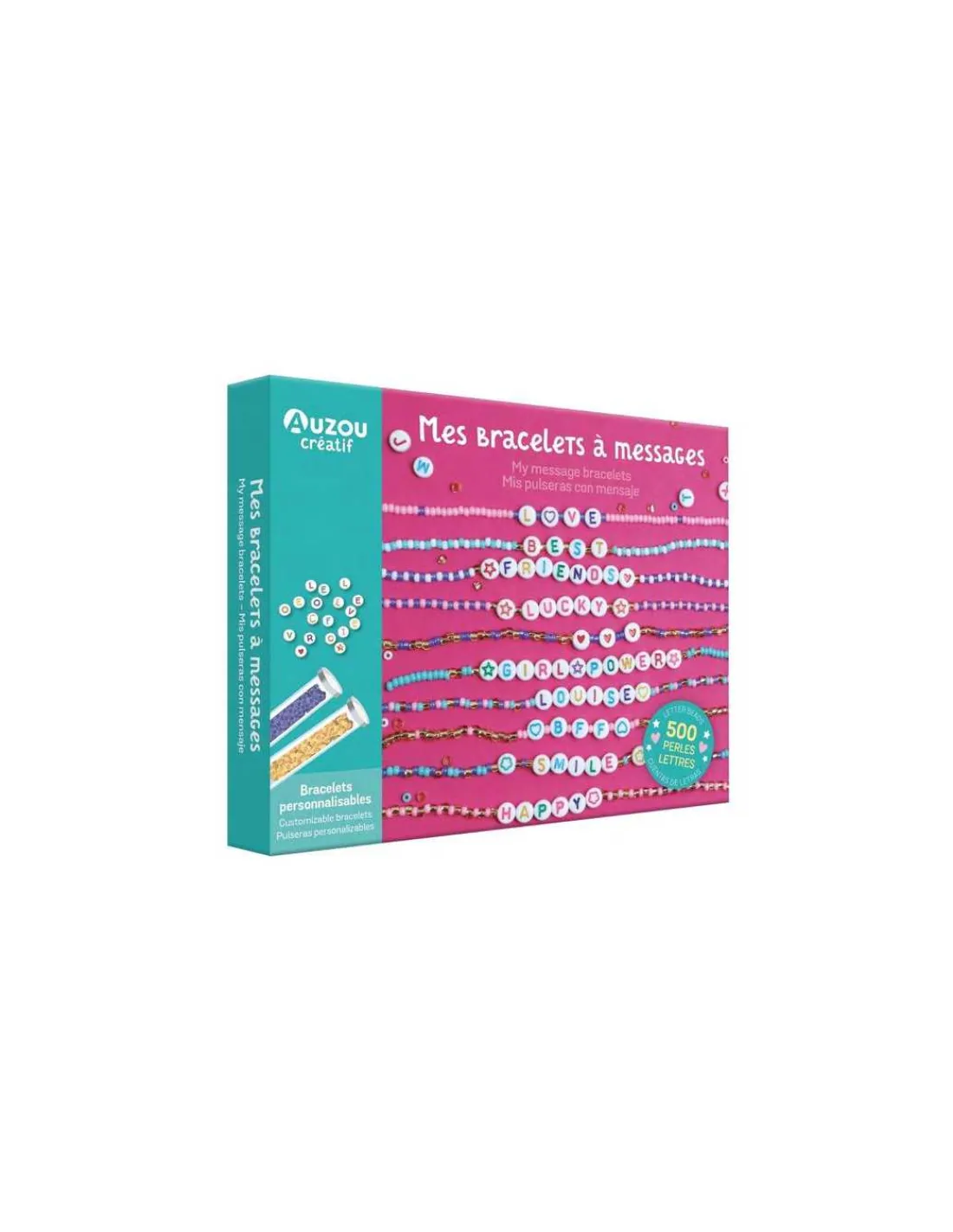 Découvrez Mes bracelets à messages de la collection « Auzou Bijoux » de Auzou, un magnifique coffret comprenant des perles « Lettres » et des perles de rocaille pour réaliser de jolis bracelets personnalisables dès 6 ans.