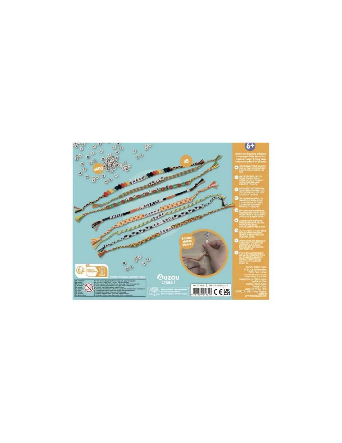 Un magnifique coffret comportant 8 fils de couleurs différentes pour réaliser plein de bracelets brésiliens, ainsi que 400 perles lettres. Un passe-fil permet de faire passer facilement les perles lettres dans les fils des bracelets. Des tutos vidéos sont inclus via un QR code !