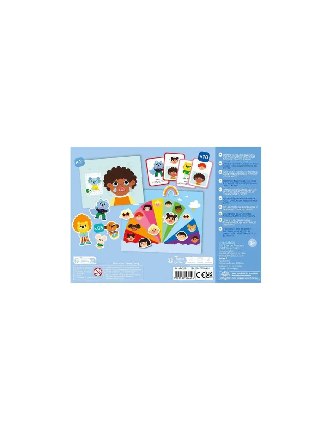 Un coffret cadeau de la gamme Auzou éveil pour les enfants à partir de 3 ans qui comprend 2 tableaux magnétiques, 65 aimants et 10 cartes sur le thème des émotions.