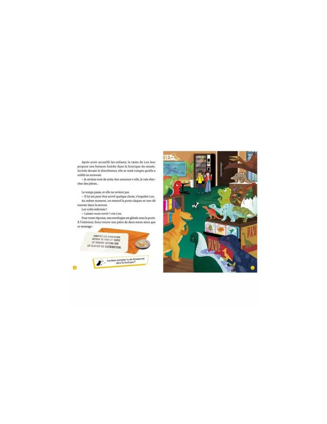 Super, Enzo et Lou vont au musée des dinosaures ! Mais alors qu’ils attendent leur guide, ils reçoivent un curieux message… Enzo doit faire appel à ses talents de détective pour sortir du musée. Et cette fois, le lecteur devra l’aider !