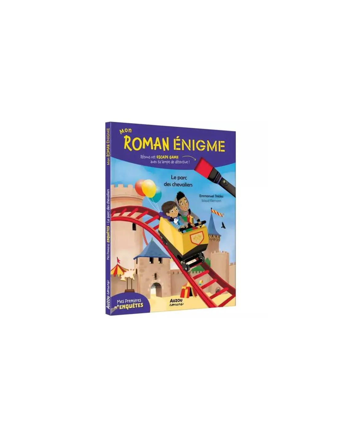 Découvrez le livre Mon roman énigme – le parc des chevaliers de Auzou, un livre escape game avec une lampe de détective à offrir aux enfants dès 6 ans. Aide Enzo à sortir du parc d’attraction !