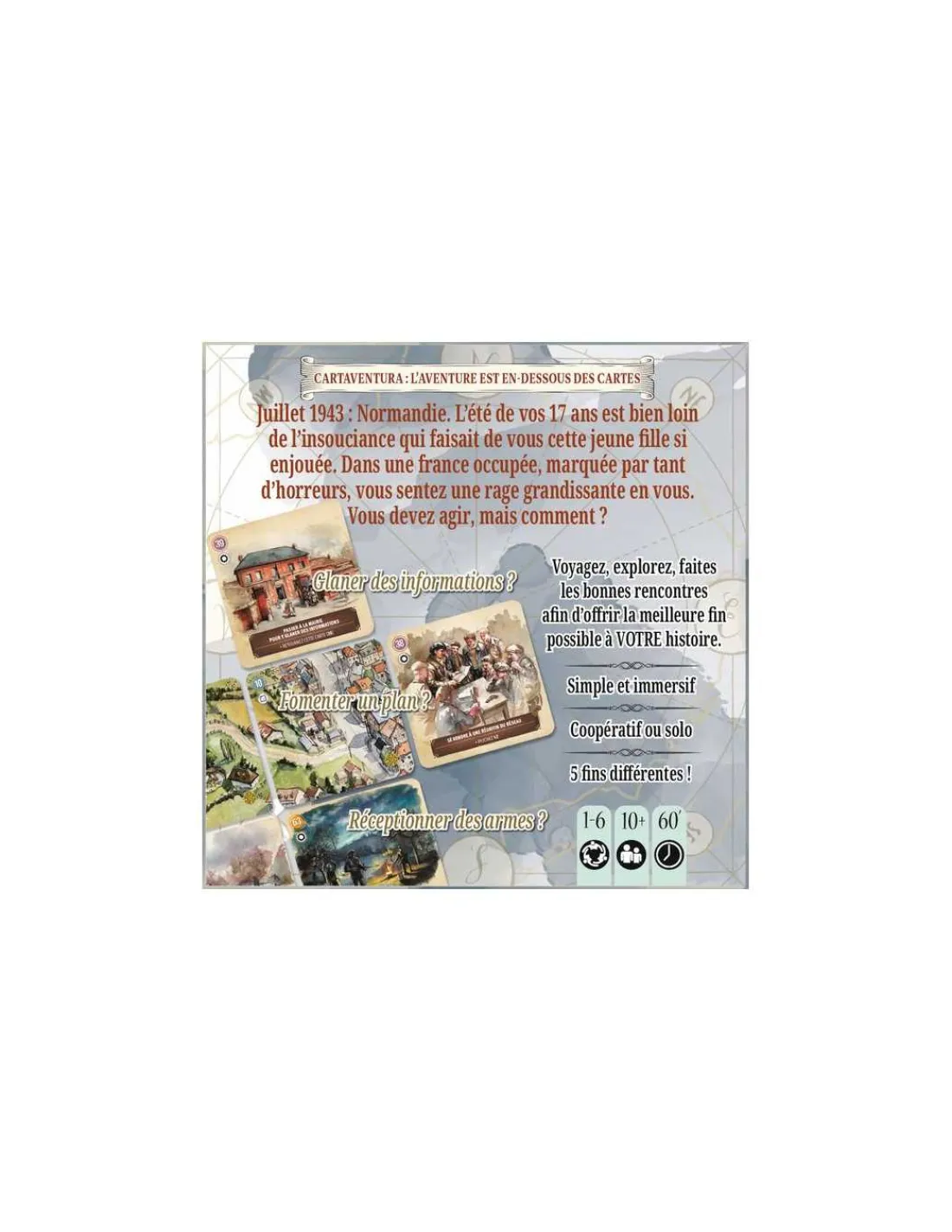 Découvrez le jeu Cartaventura : Résistance de Blam, un jeu de cartes narratif au scénario immersif et aux multiples dénouements pour jouer de 1 à 6 joueurs, à partir de 10 ans.