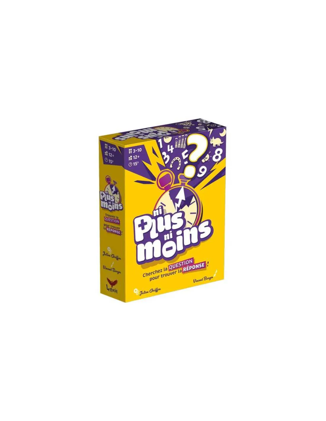 Découvrez le jeu Ni Plus Ni Moins de Letheia Games, un jeu d’ambiance pour jouer de 3 à 10 joueurs à partir de 12 ans. Un jeu de société captivant où l’art de poser les bonnes questions mène à la victoire!