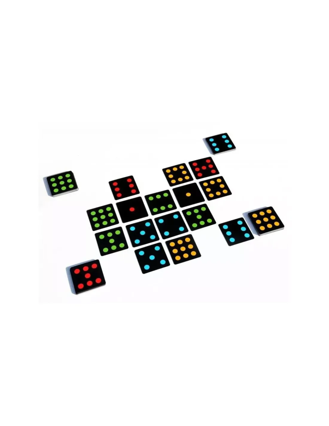Le jeu contient 72 cartes carrées (4 couleurs) et la règle du jeu