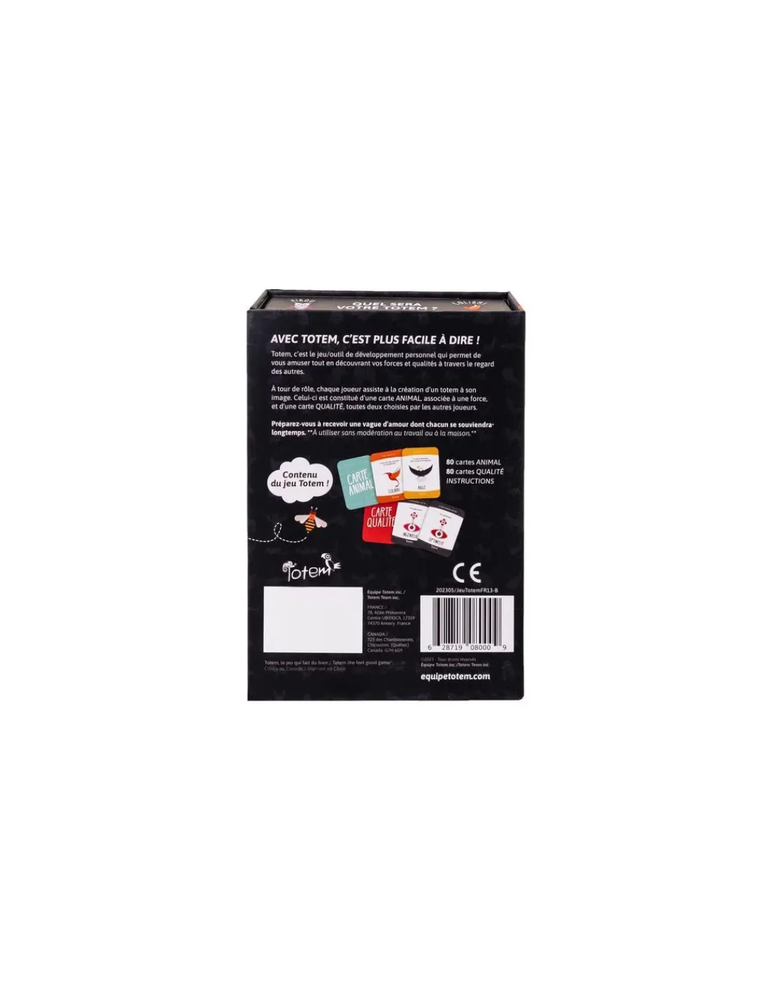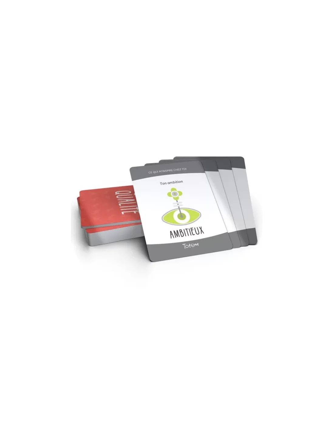 Découvrez le jeu Totem, le jeu d’estime de soi qui fait du bien et vous fait découvrir vos forces à travers le regard des autres. Un jeu unique qui s’adresse aux familles, aux entreprises, aux intervenants et aux écoles. Un jeu simple, touchant et rassembleur avec plus de 6400 possibilités, un excellent moyen de faire des connections.