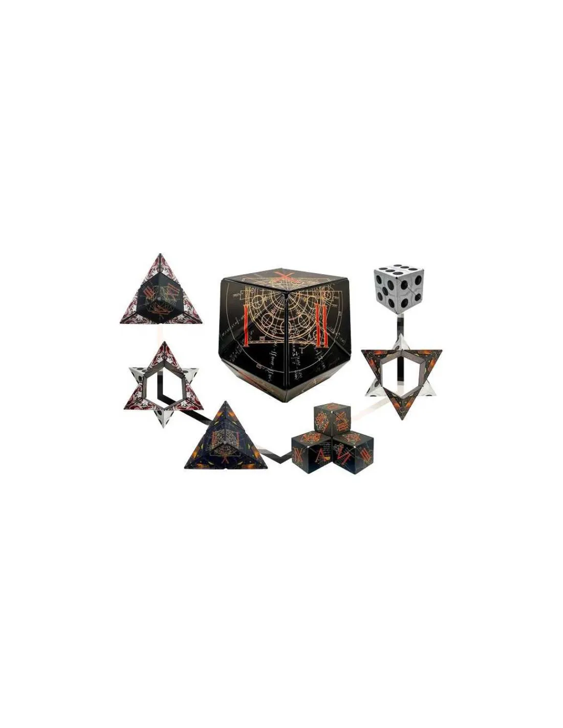 Ce mystérieux cube magnétique se transforme en plus de 70 formes kaléidoscopiques. Agitez, tordez, et laissez-vous guider par les 36 aimants. Avec ses 70 possibilités de formes, ce casse-tête en 3 dimensions propose une variété infinie de combinaisons à explorer. Des heures de divertissement stimulant l’esprit et les sens vous attendent!