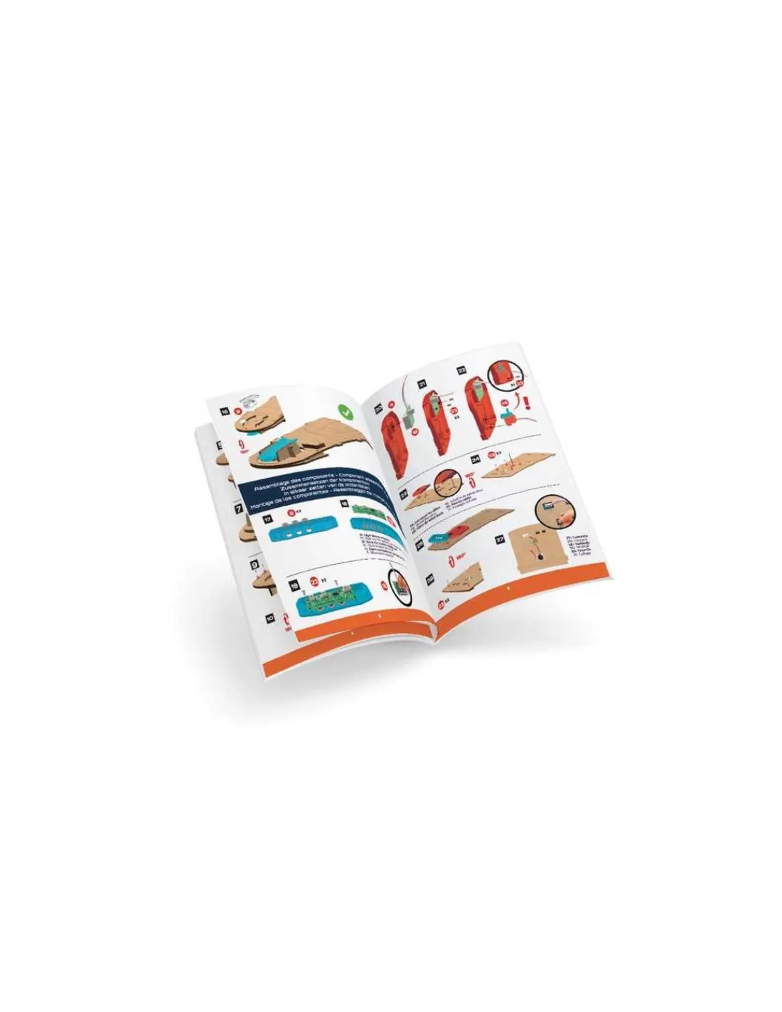 Le coffret comprend 6 planches en bois, 3 planches Mini-Jeux, 10 balles, 1 tournevis et vis, 1 compartiments à piles, 1 planche d’autocollants et 1 notice illustrée en couleurs.