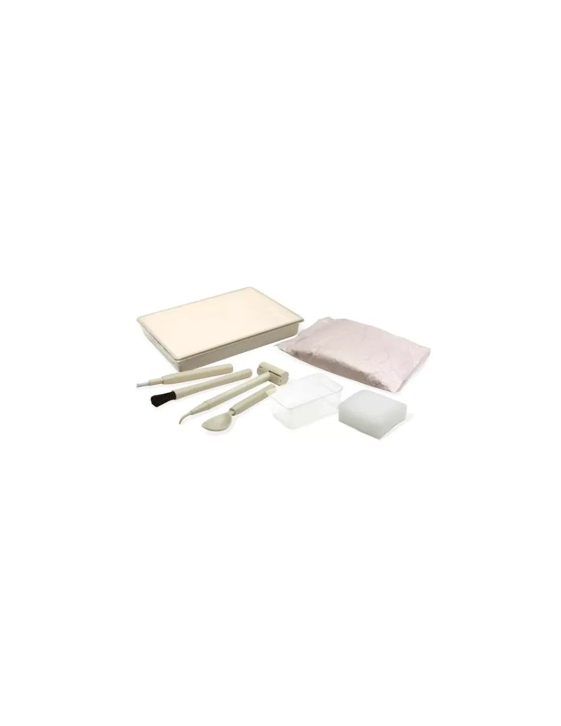 Comme pour toutes les fouilles, il est important que le site soit préparé avant de commencer la fouille. Choisis une surface plane afin de pouvoir travailler correctement sur la roche. Il est important de répartir du papier journal sur la surface car les travaux vont provoquer de la poussière et quelques salissures. Une fois la surface préparée, dispose la roche et les outils sur la surface et part à la recherche des ossements qui permettront de reconstituer le dinosaure Tyrannosaure.