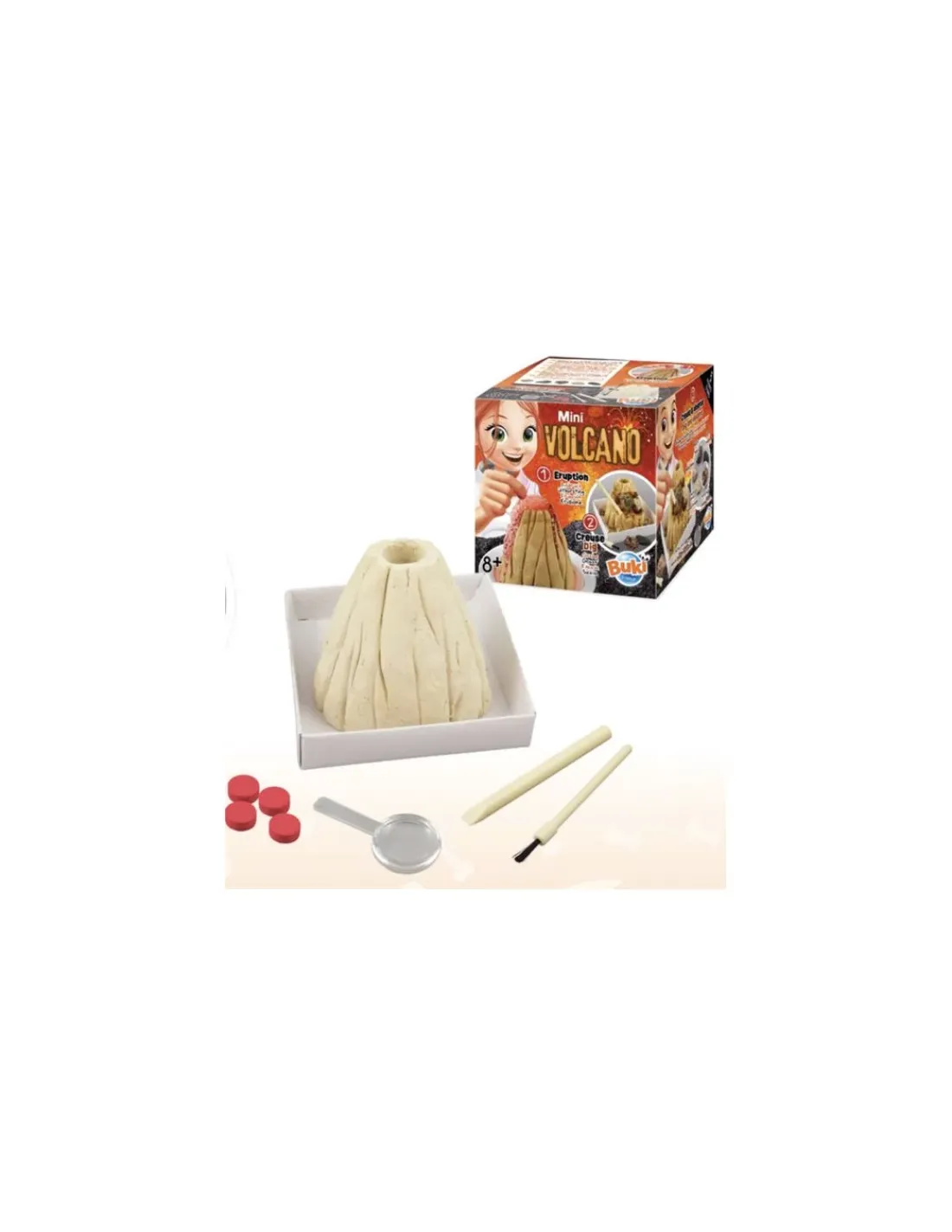 Découvrez le coffret mini volcano de Buki, une activité autour de l’éruption d’un volcan et un kit de fouille pour découvrir des pierres volcaniques pour les enfants à partir de 8 ans.