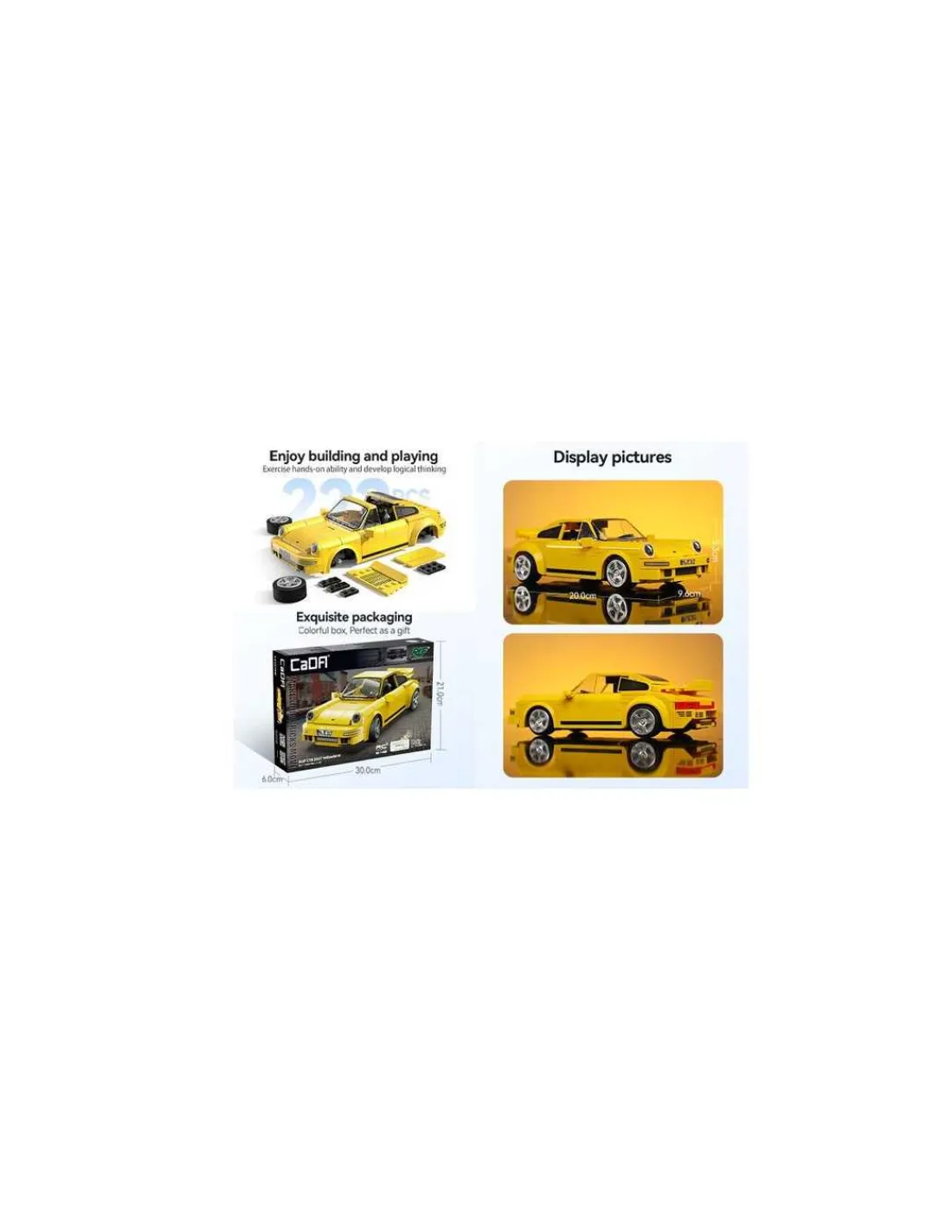 Découvrez le coffret Voiture de course RUF CTR 2017 Yellowbird 222 pièces de CaDA, un jeu de construction avec des briques pour réaliser sa voiture de sport télécommandée (RC à partir de 6 ans.