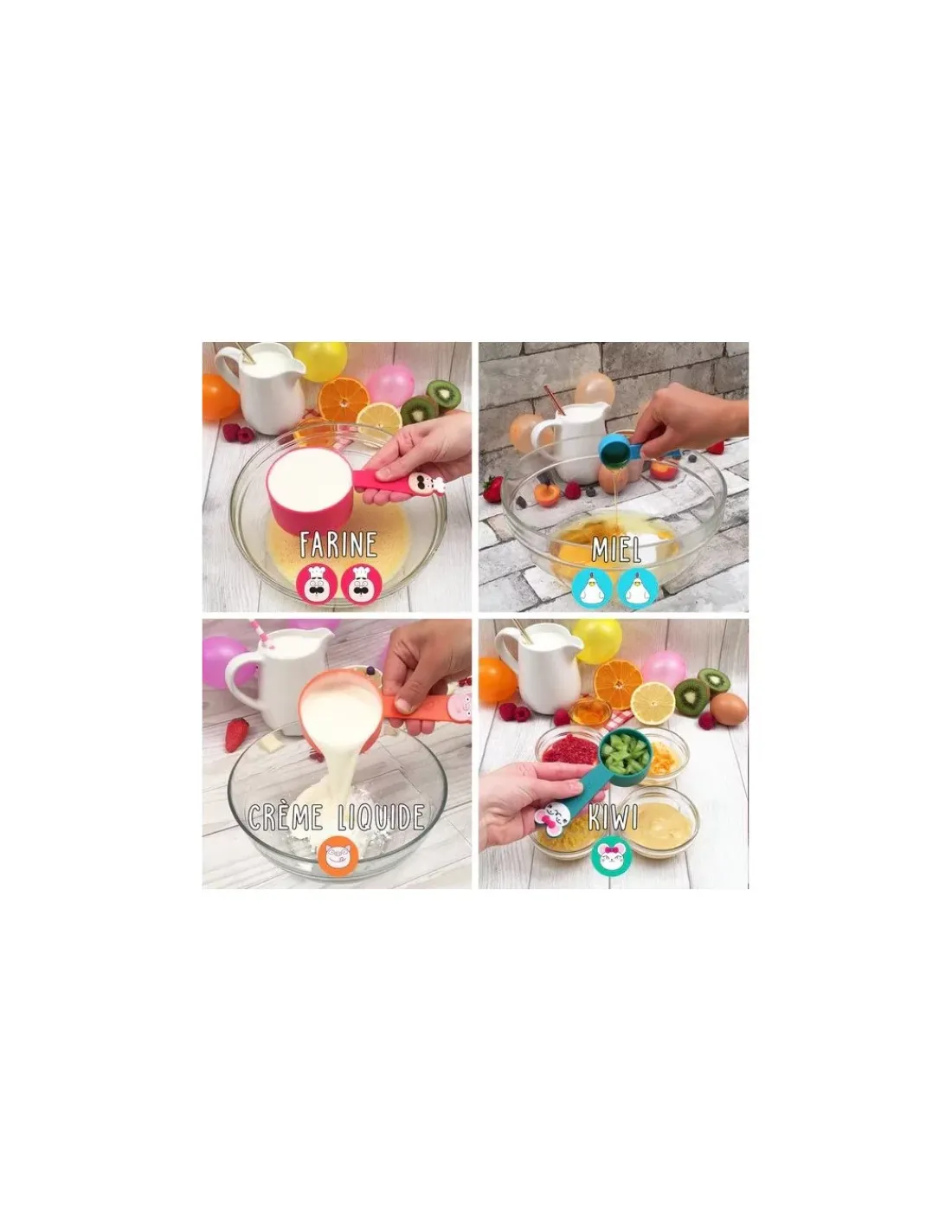 Les tasses Chefclub sont ludiques et ont été conçues pour que les filles et les garçons prennent du plaisir en cuisine. Fini les mesures compliquées… les grammes et les millilitres sont maintenant remplacés par de drôles de personnages de différentes tailles et de différentes couleurs. Vos enfants pourront cuisiner en autonomie en suivant les étapes illustrées de la recette.