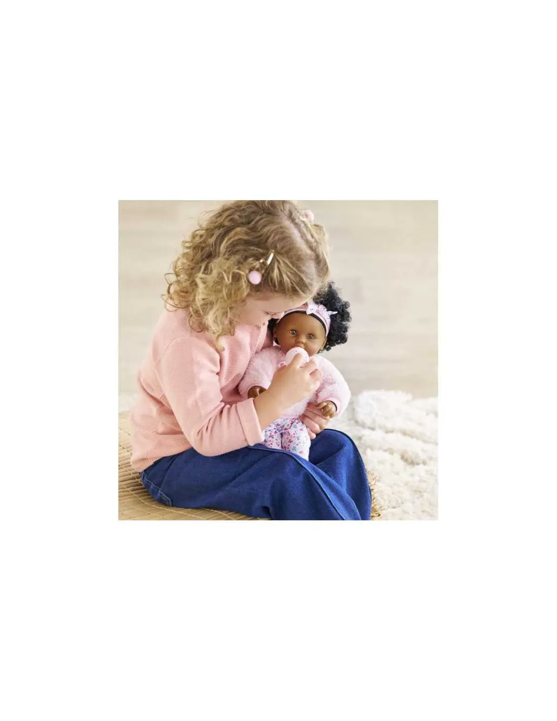 Son corps souple lui permet de prendre les mêmes positions qu’un vrai bébé. Son visage, ses bras et ses jambes, à la délicate senteur de vanille, sont en vinyle doux au toucher. Avec ses yeux dormeurs, ce poupon fait dodo quand on le couche sur le dos.