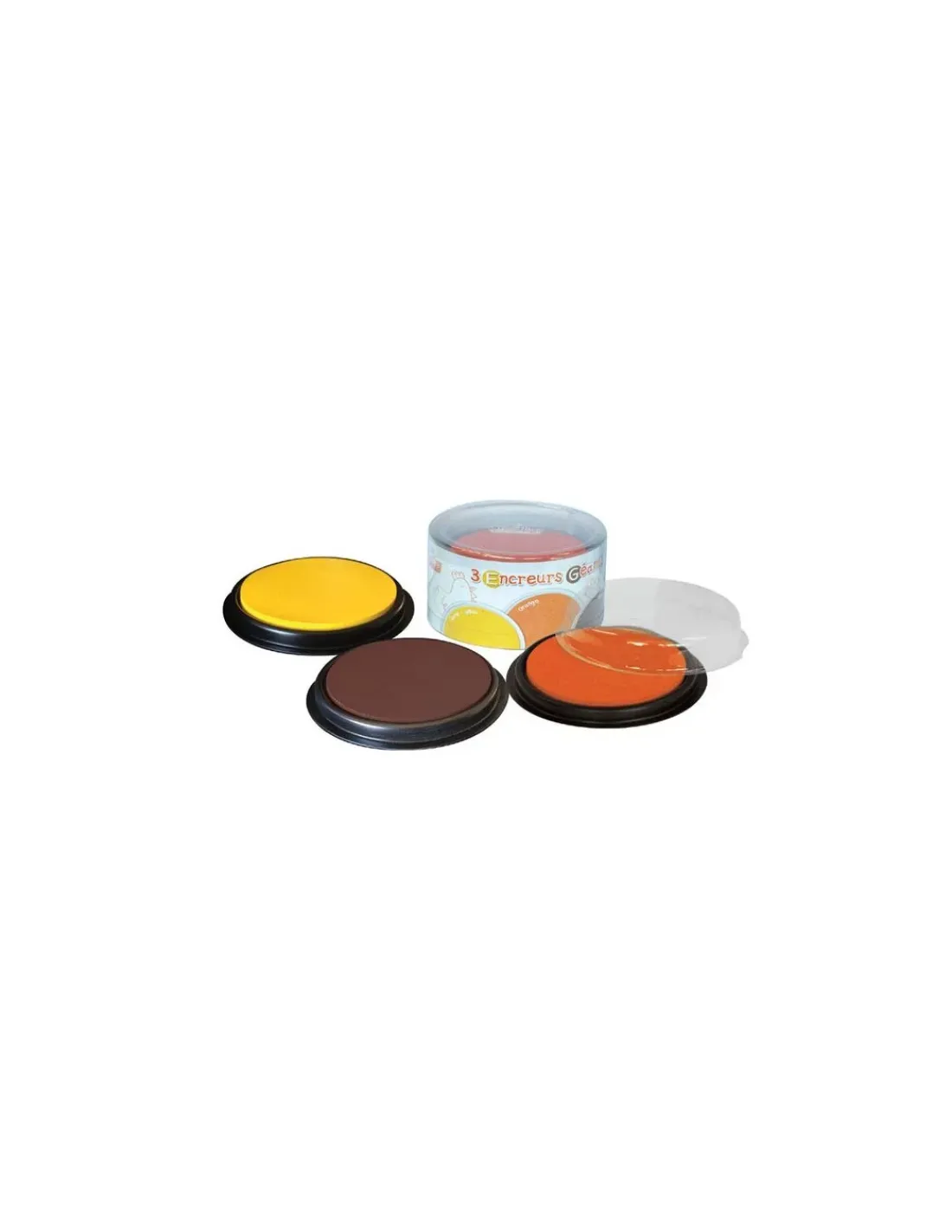 Découvrez la boite de 3 encreurs géants ronds jaune orange marron de Créalign’, 3 gros encreurs pour accueillir des tampons de différentes tailles.