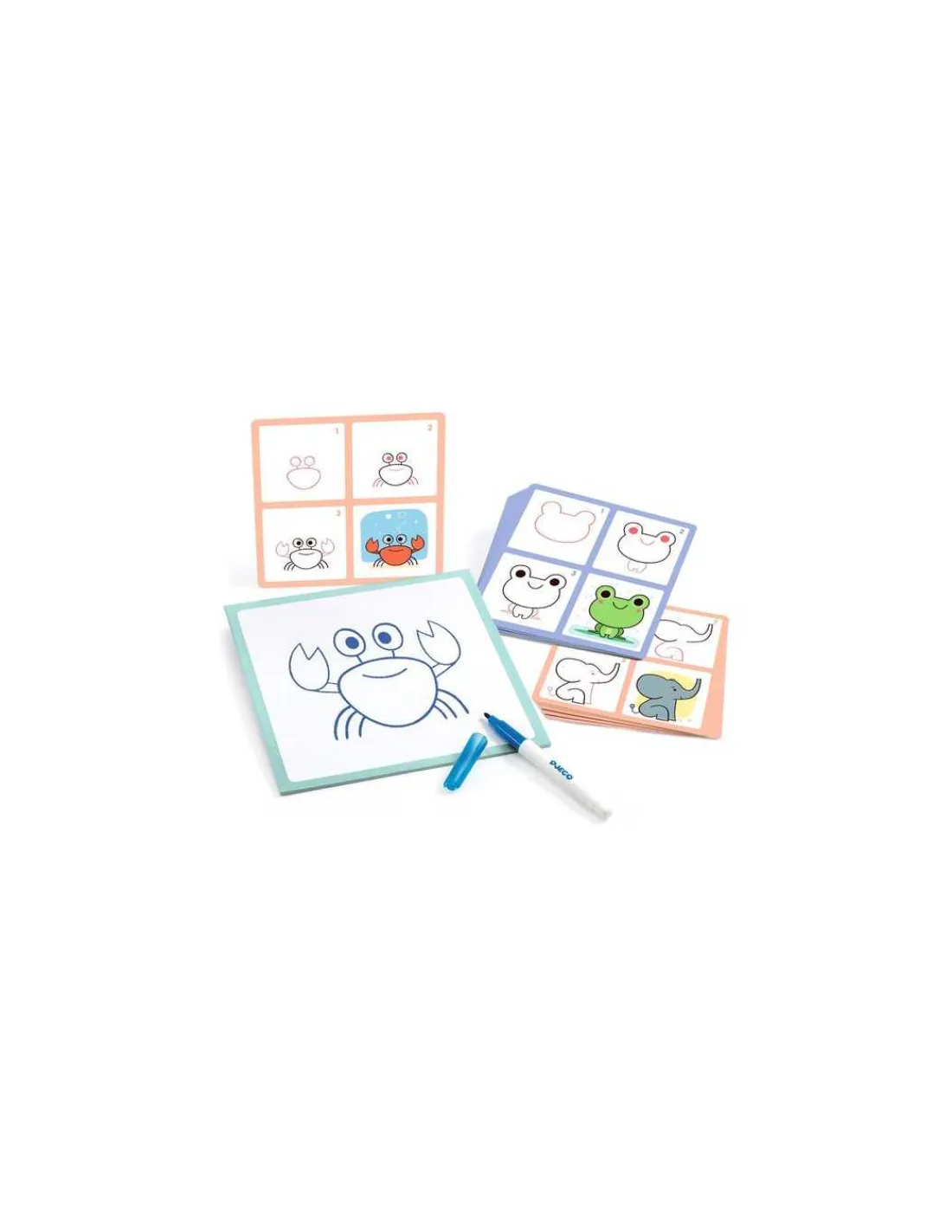 Un jeu qui permet d’apprendre à dessiner pas à pas en suivant un modèle. La planche effaçable permet de s’entraîner à l’infini! Un coffret idéal pour apprendre à dessiner en s’amusant!