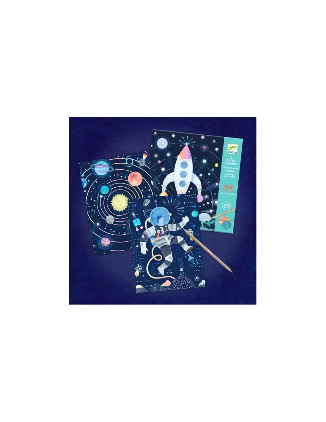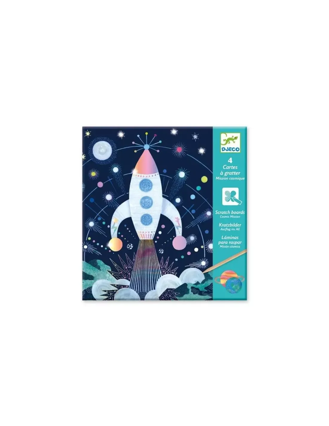 Découvrez les cartes à gratter Mission cosmique de Djeco, un loisir créatif ludique et original pour voyager dans l’espace. Une activité manuelle pour les enfants à partir de 6 ans avec 4 cartes à gratter avec un stylet.