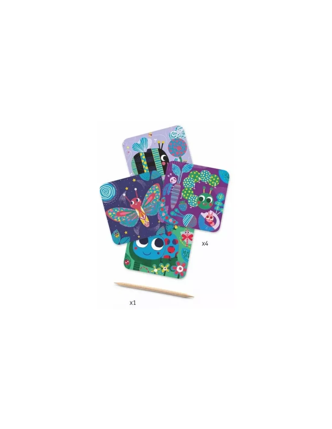 Découvrez les cartes à gratter toutes petites bêtes de Djeco, un loisir créatif pour les enfants de 3 à 6 ans avec une activité ludique et originale pour révéler des illustrations en grattant avec un stylet.