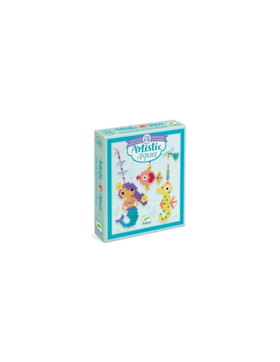 Découvrez le coffret collage à l’eau marins Artictic aqua de Djeco, un coffret créatif pour les enfants à partir de 6 ans qui vont réaliser des suspensions avec des perles qui adhérent les unes aux autres sous l’action de l’eau. Une sirène, un poisson et un hippocampe à créer facilement.