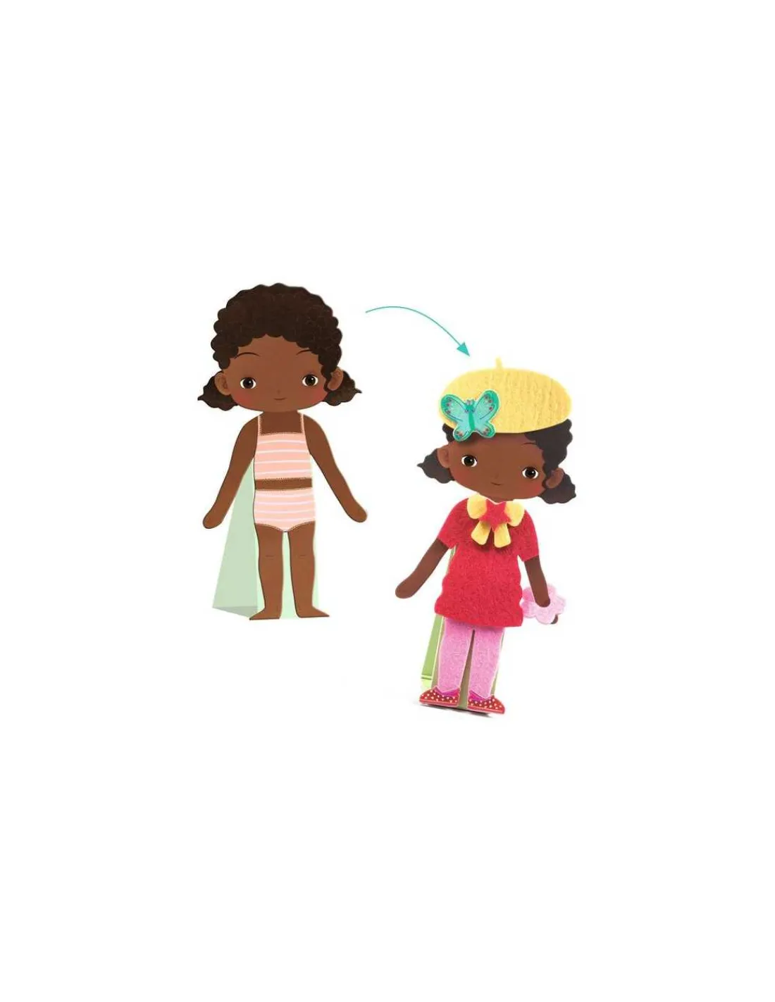 Découvrez le coffret Collage de feutrine S’habiller de douceur de Djeco, une activité créative de collage avec de la feutrine autocollantes pour les enfants de 3 à 6 ans.