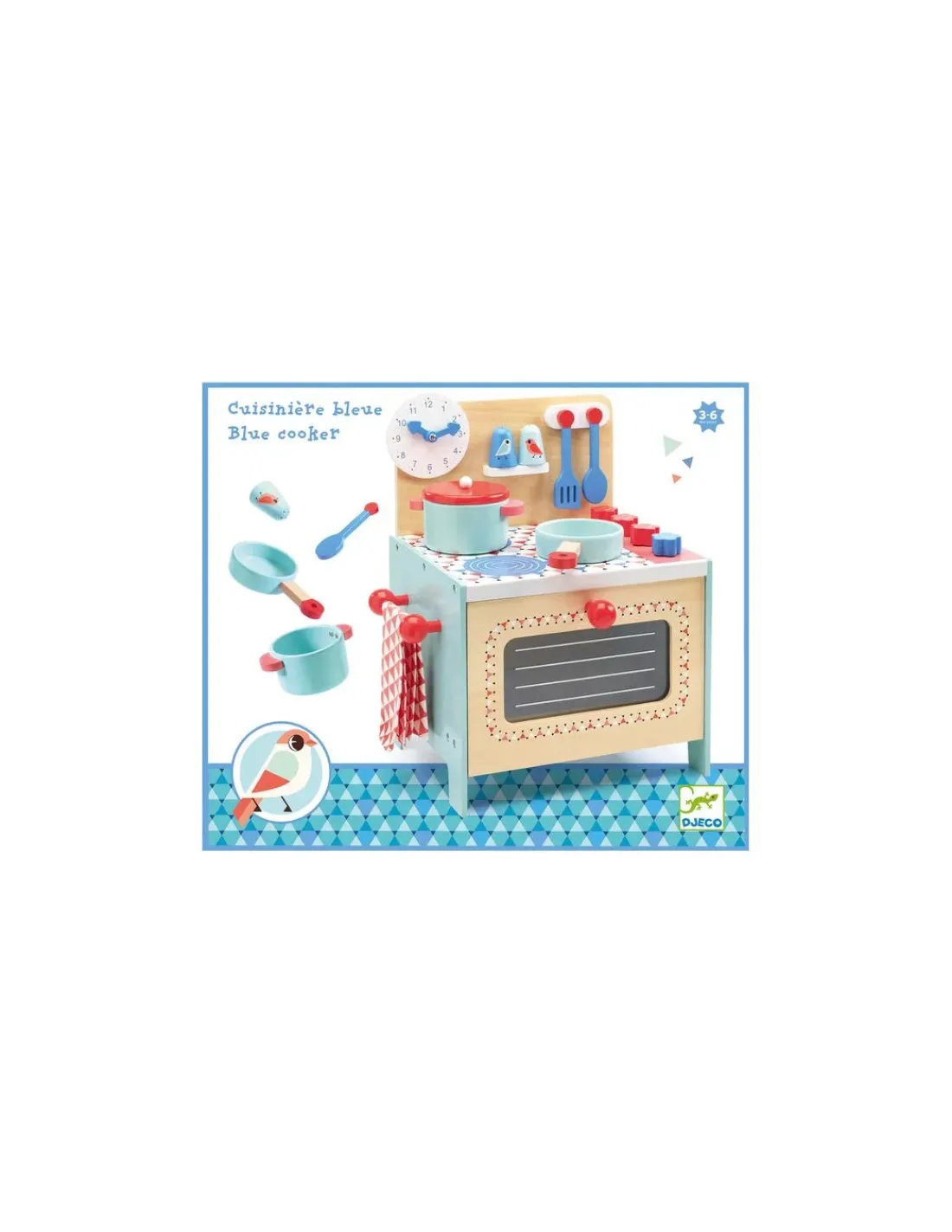 Découvrez la cuisinière bleue de Djeco, une magnifique cuisine en bois avec tous les accessoires de cuisine, un superbe cadeau pour les enfants de 3 à 6 ans. Avec un look tendance, elle fera un très beau cadeau, qui trouvera sa place dans la chambre de votre enfant ou dans la salle de jeu pour cuisinier comme papa et maman.