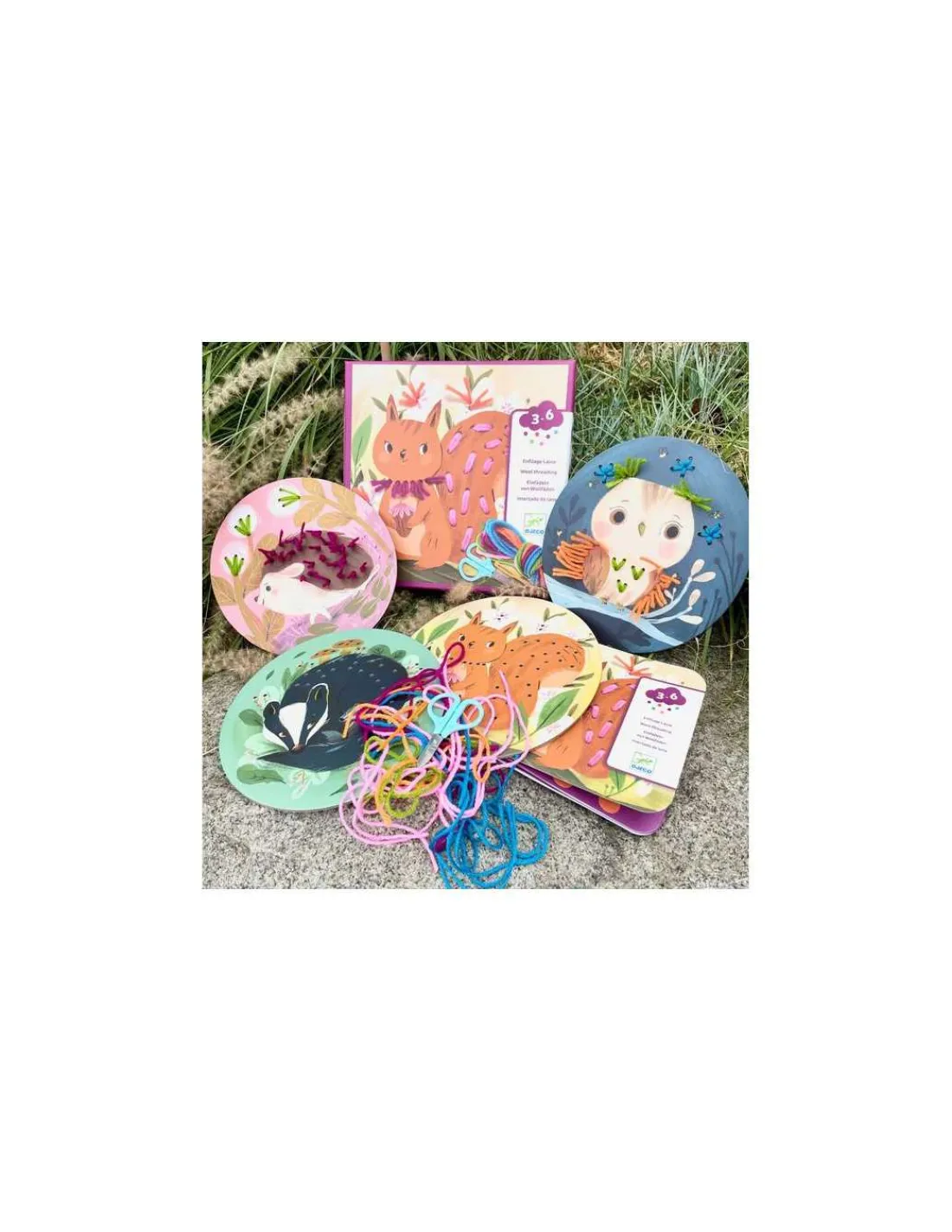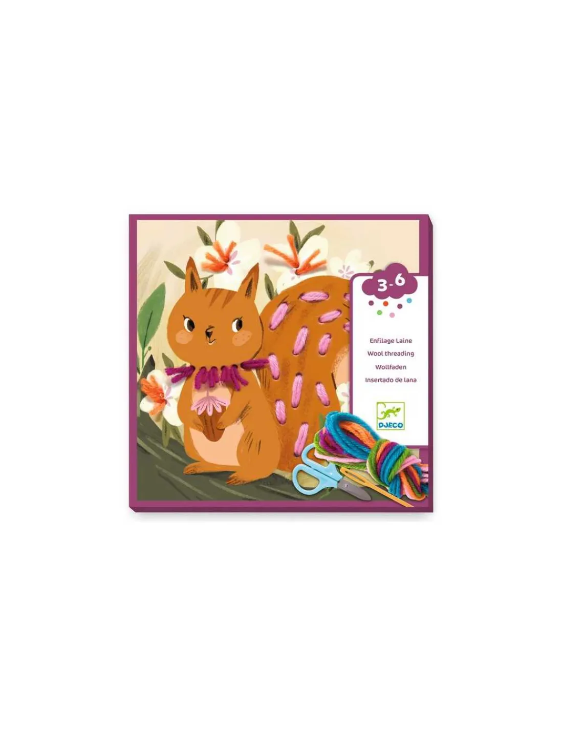 Découvrez le coffret Enfilage laine Petit pas avec du fil de Djeco, une activité créative et ludique, une première initiation à la broderie pour les enfants de 3 à 6 ans.