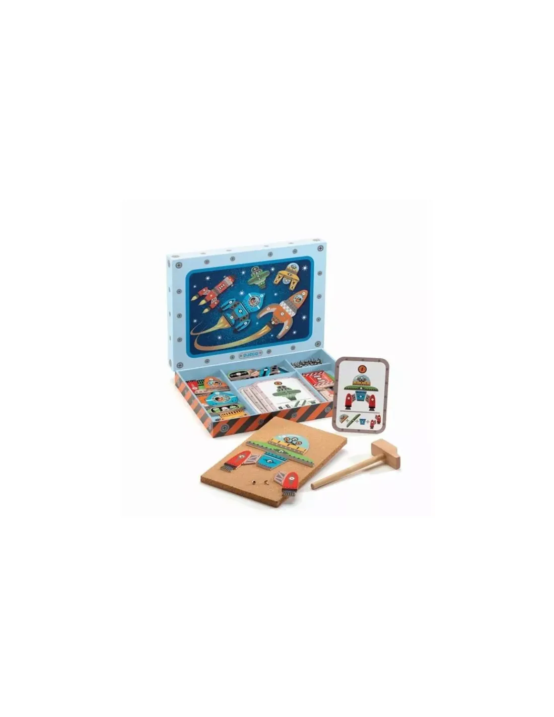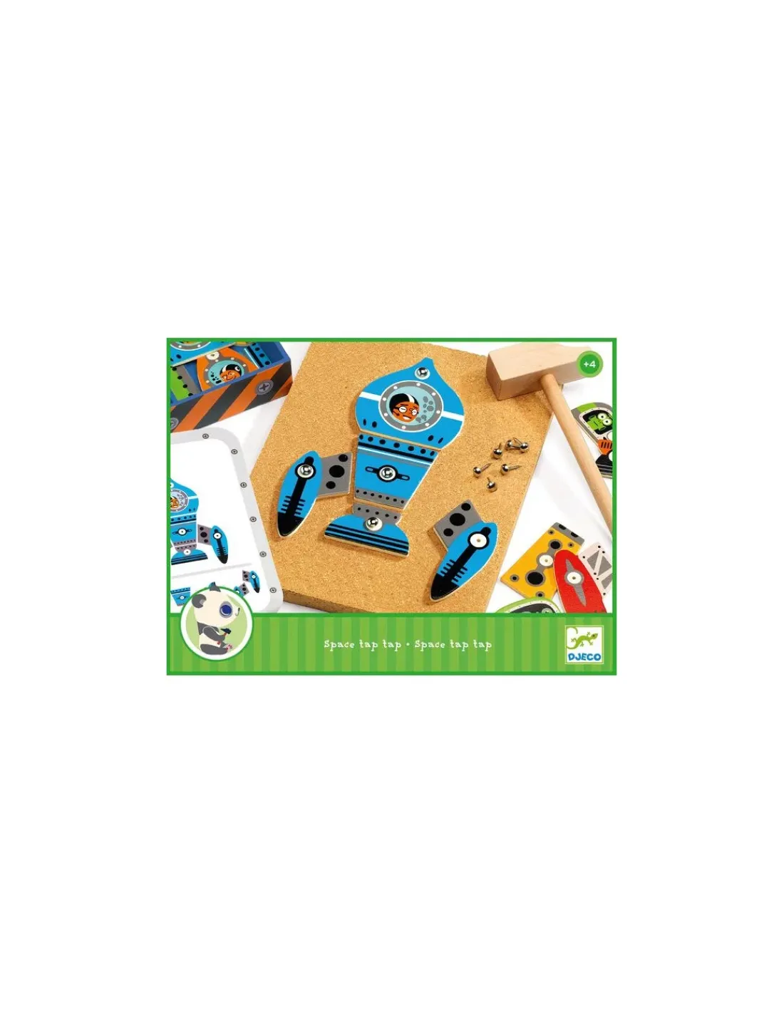 Découvrez Tap tap espace de Djeco, un jeu de construction pour créer toutes sortes de fusées et d’engins spatiaux à l’aide d’un marteau et de clous. Un classique des activités de maternelle revisité par Djeco, pour développer la dextérité des plus jeunes dès 4 ans.