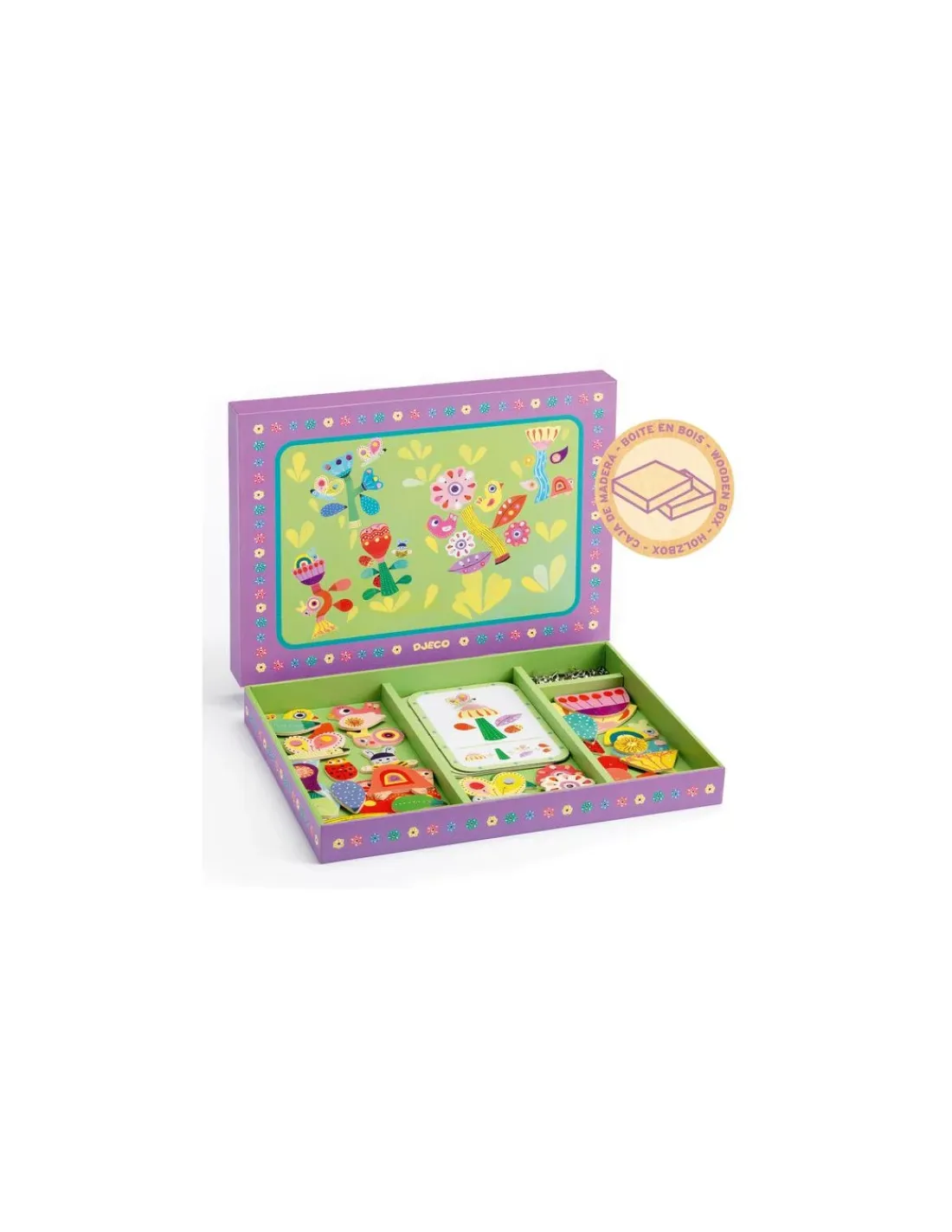 Un jeu de tap tap présenté dans une jolie et solide boîte en bois. Elle est conçue avec des compartiments pour ranger tous les éléments à la fin du jeu.