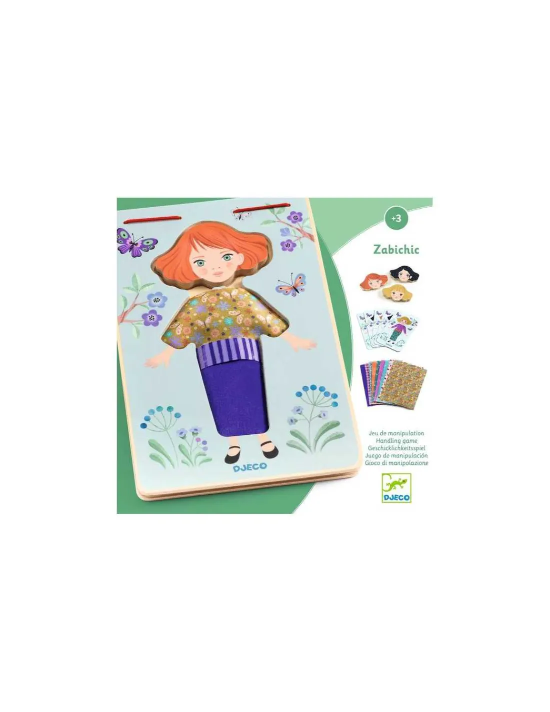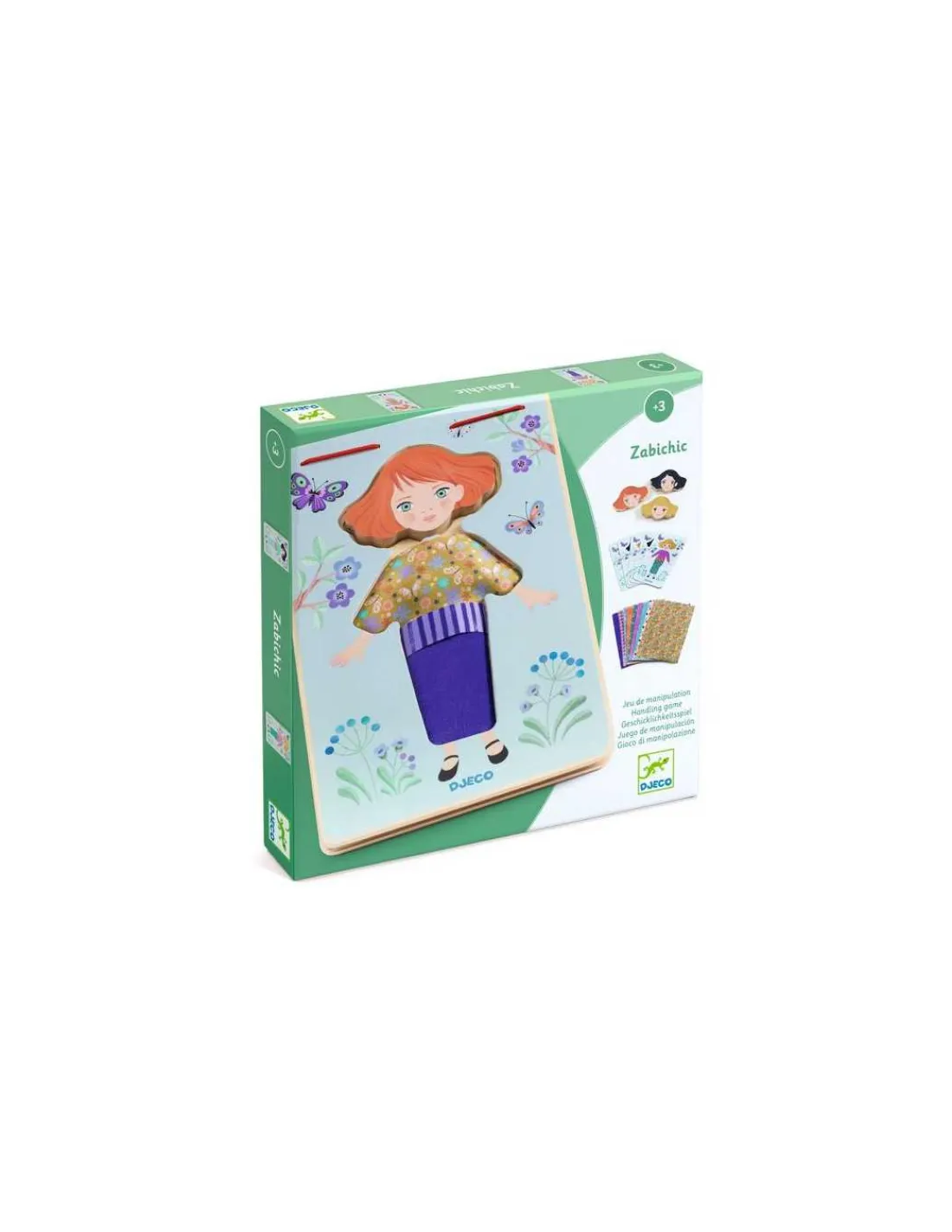 Découvrez le jeu de manipulation ZabiChic de Djeco, un jeu de mode unique conçu pour les enfants dès 3 ans, qui s’amuseront à mélanger les différents tissus imprimés et rubans colorés pour créer de magnifiques tenues.