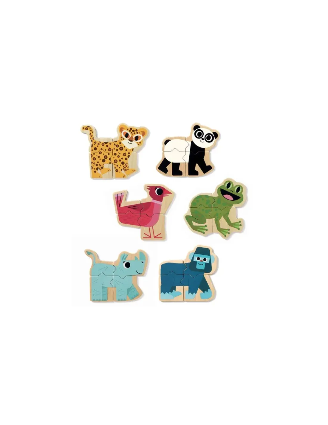 Ce jeu se compose de 24 pièces magnétiques en bois permettant de reconstituer 6 animaux en 4 parties : un guépard, un panda, un oiseau, une grenouille, un rhinocéros et un gorille… et bien entendu votre enfant s’amusera à mélanger les pièces pour créer des animaux farfelus. Des encoches permettent un meilleur placement des pièces entre elles.