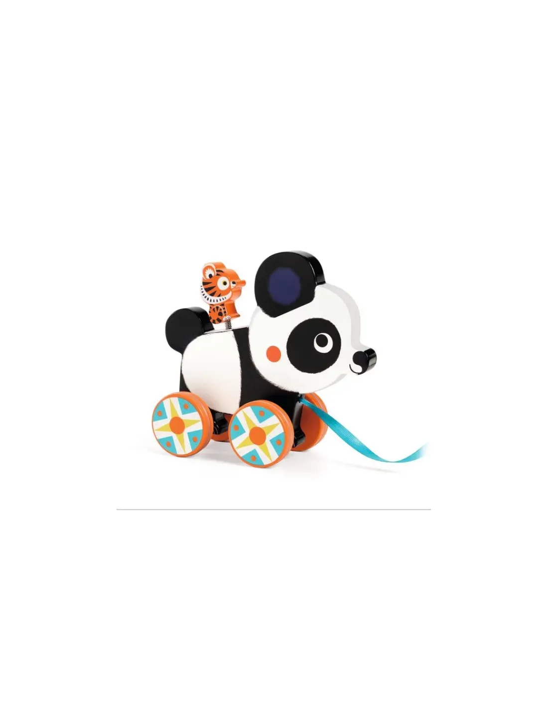 Découvrez le jouet à tirer Billie de Djeco, un jouet à traîner en forme de panda avec un petit tigre sur le dos pour les enfants à partir de 18 mois.