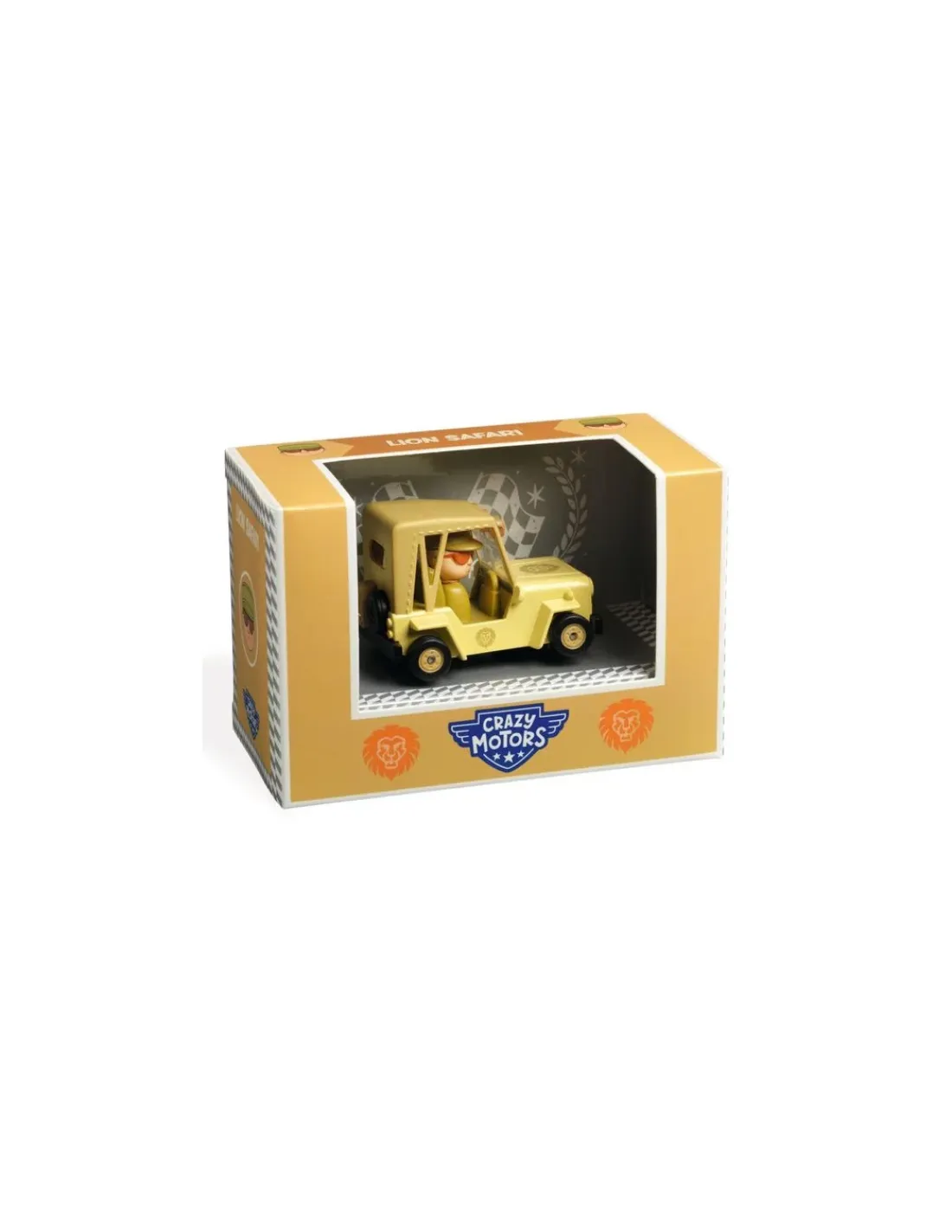 Découvrez Lion Safari de la collection Crazy Motors de Djeco, une voiture en métal avec son pilote. Un jouet pour les enfants de 3 à 9 ans.