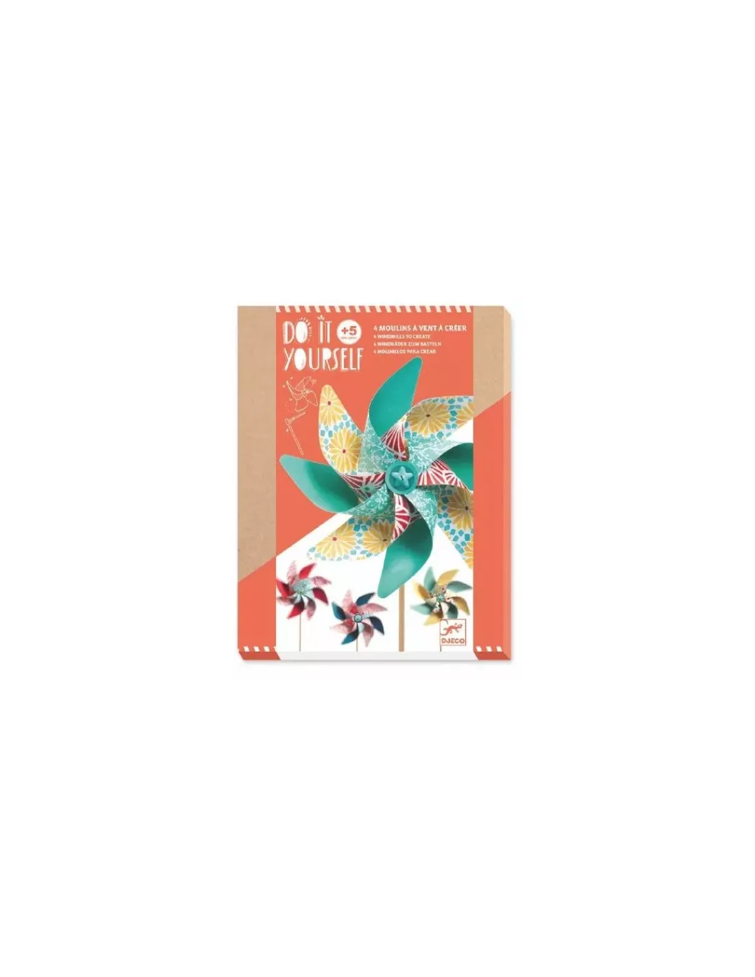 Découvrez les 4 moulins à vent à créer Sweet de la collection Do It Yourself de Djeco, un coffret créatif pour les enfants à partir de 5 ans avec 4 moulins à assembler.