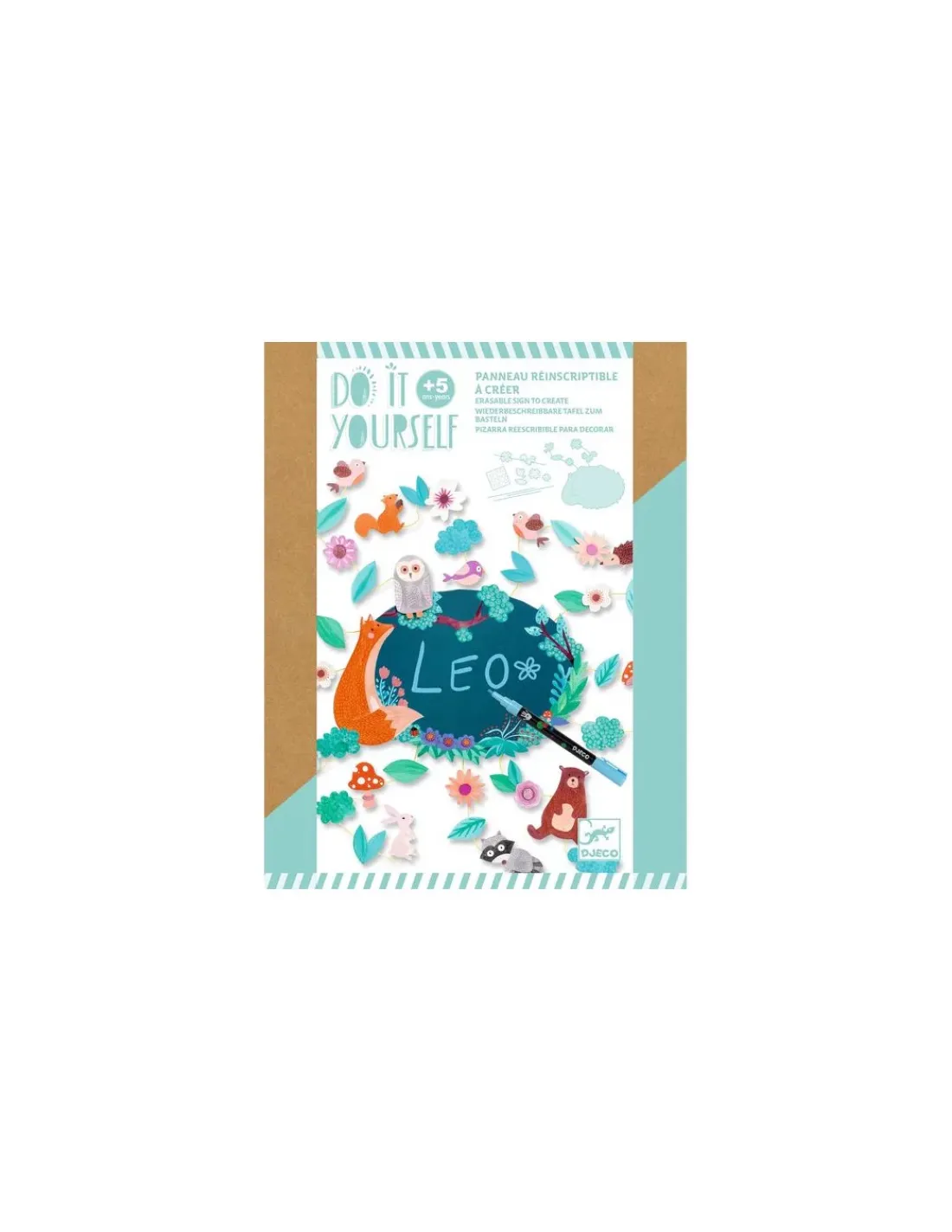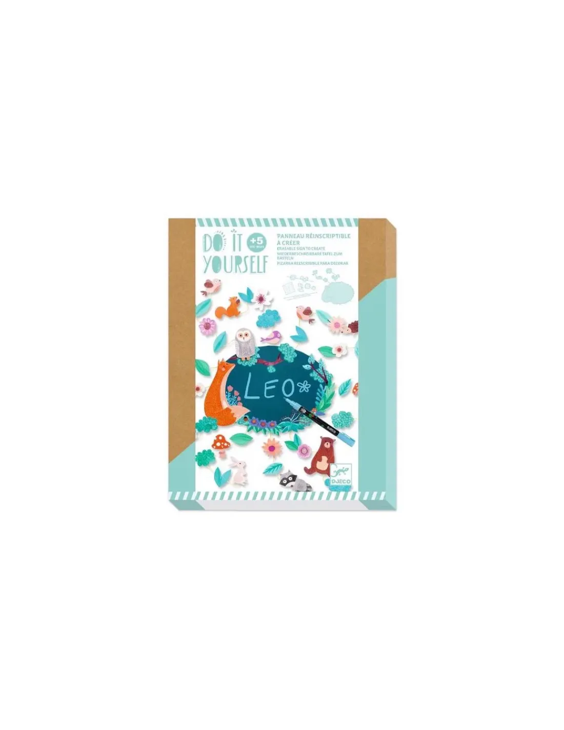 Découvrez le coffret Panneau réinscriptible à créer Dans les bois de la collection Do It Yourself de Djeco, un kit créatif permettant aux enfants, dès 5 ans, de confectionner un joli panneau effaçable sur le thème de la forêt.